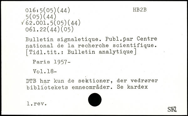 Bulletin signaletique. Publ.par Centre national de la recherche scientifique. [Tidl.tit.ï Bulletin analytique]