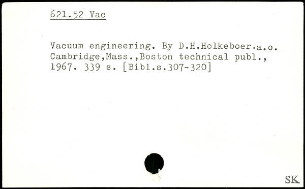 Vacuum engineering. By D.H.Holkeboer,a.0.