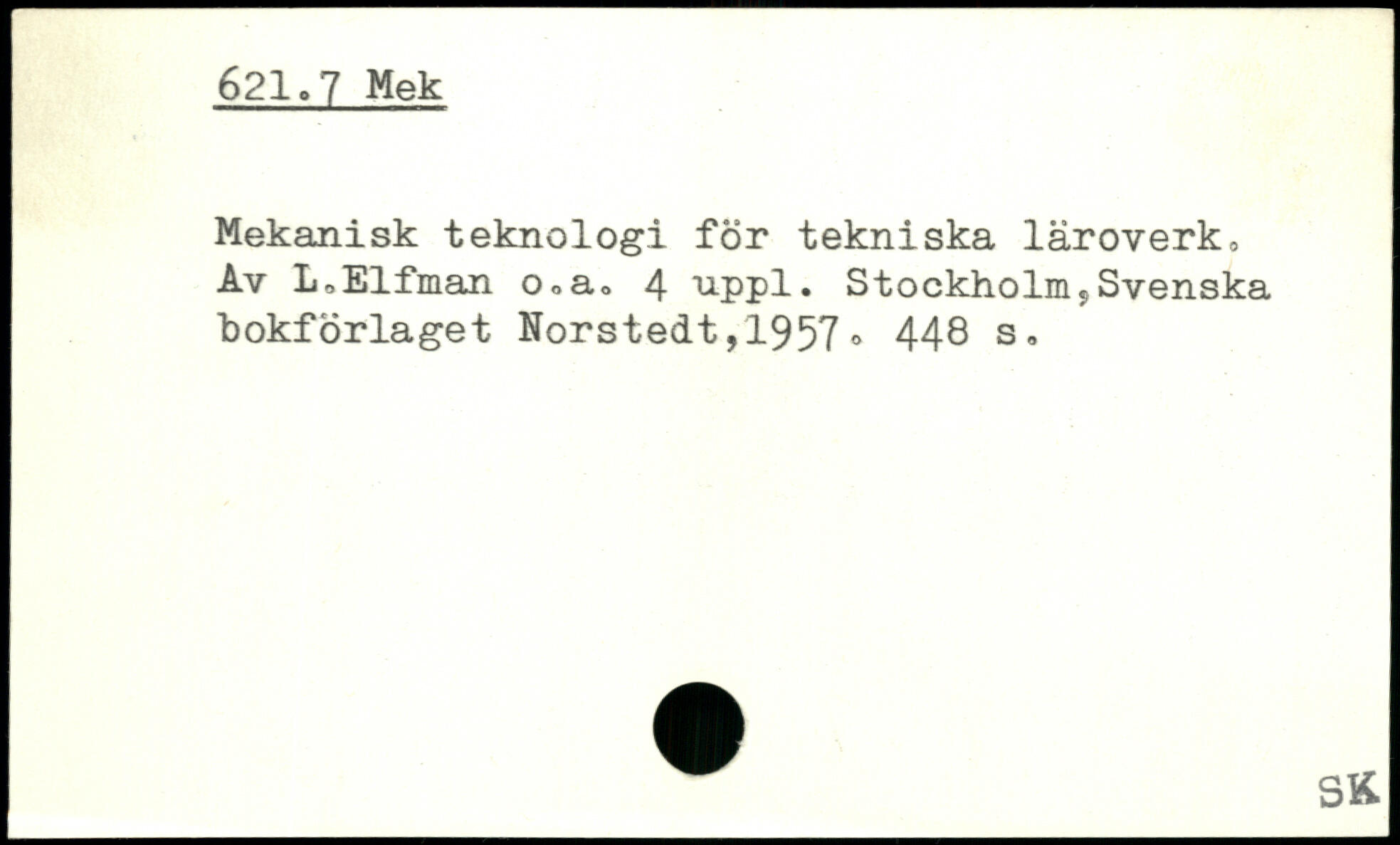 Mekanisk teknologi för tekniska läroverk. Av L.Elfman o.a. 4 nppl. Stockholm9Svenska bokförlaget Norstedt,1957.
