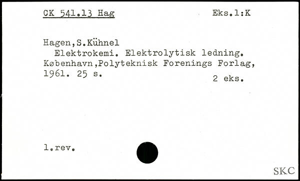 Hagen, S. Kiihnel Elektrokemi. Elektrolytisk ledning.