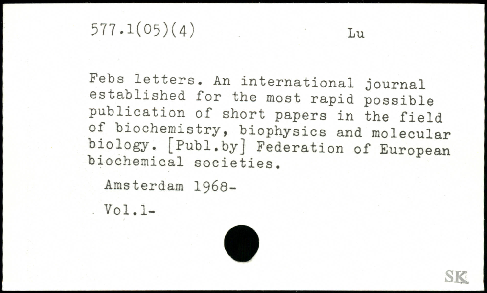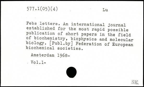 Febs letters. An international journal 6stablished For the most rapid possible publication of short papers in the field of biochemistry, biophysics and molecular biology.