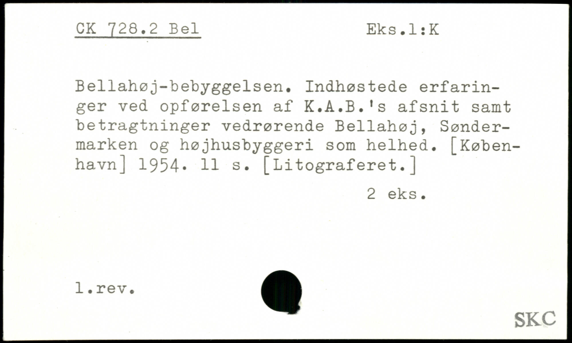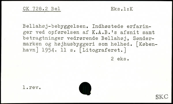 Bellahøj-bebyggelsen. Indhøstede erfaringer ved opførelsen af K.A.B.'s afsnit samt betragtninger vedrørende Bellahøj, Søndermarken og højhusbyggeri som helhed.