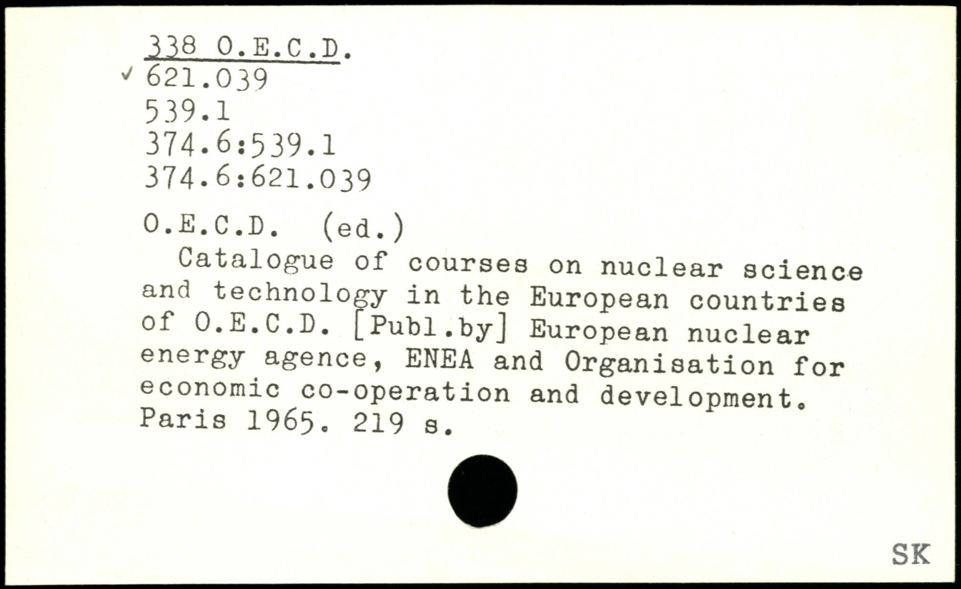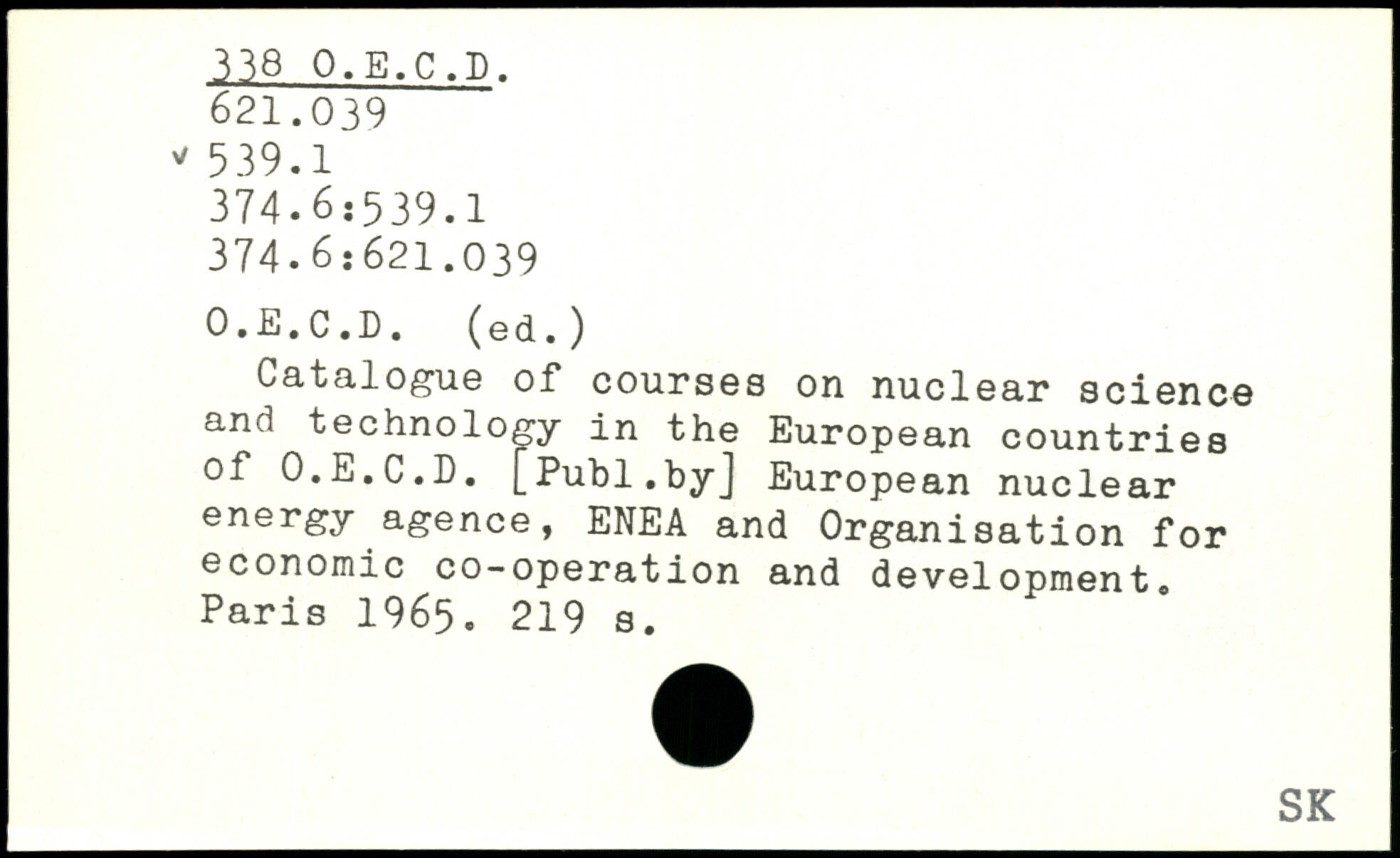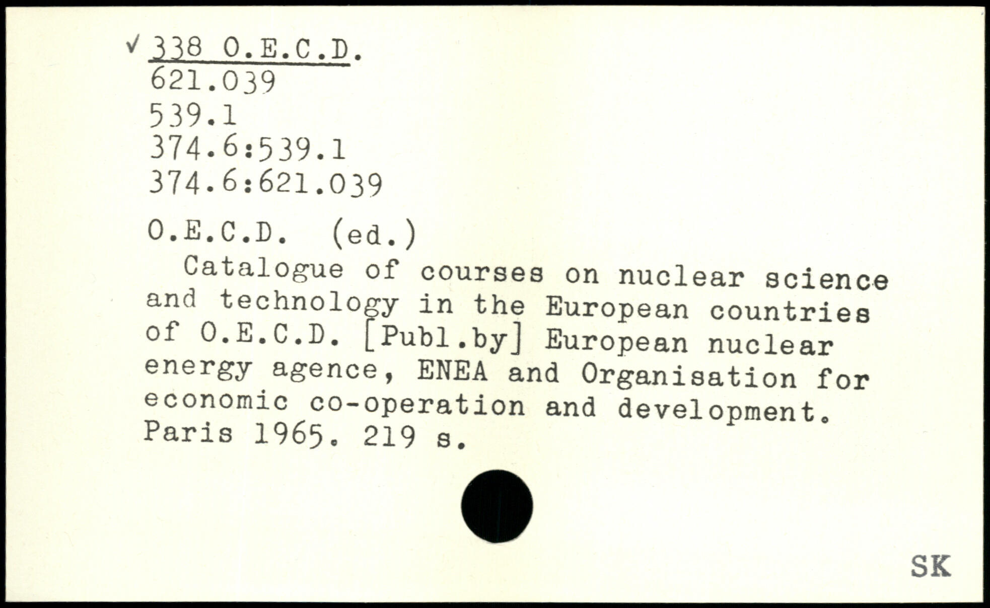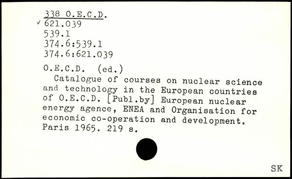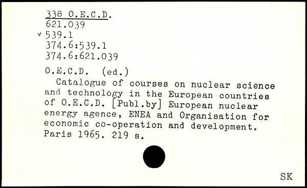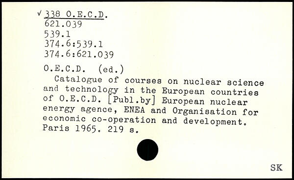 Catalogue of courses on nuclear science and technology in the European countries of O.E.C.D. [Puhl.byj European nuclear energy agence, ENEA and Organisation for economic co-operation and development.