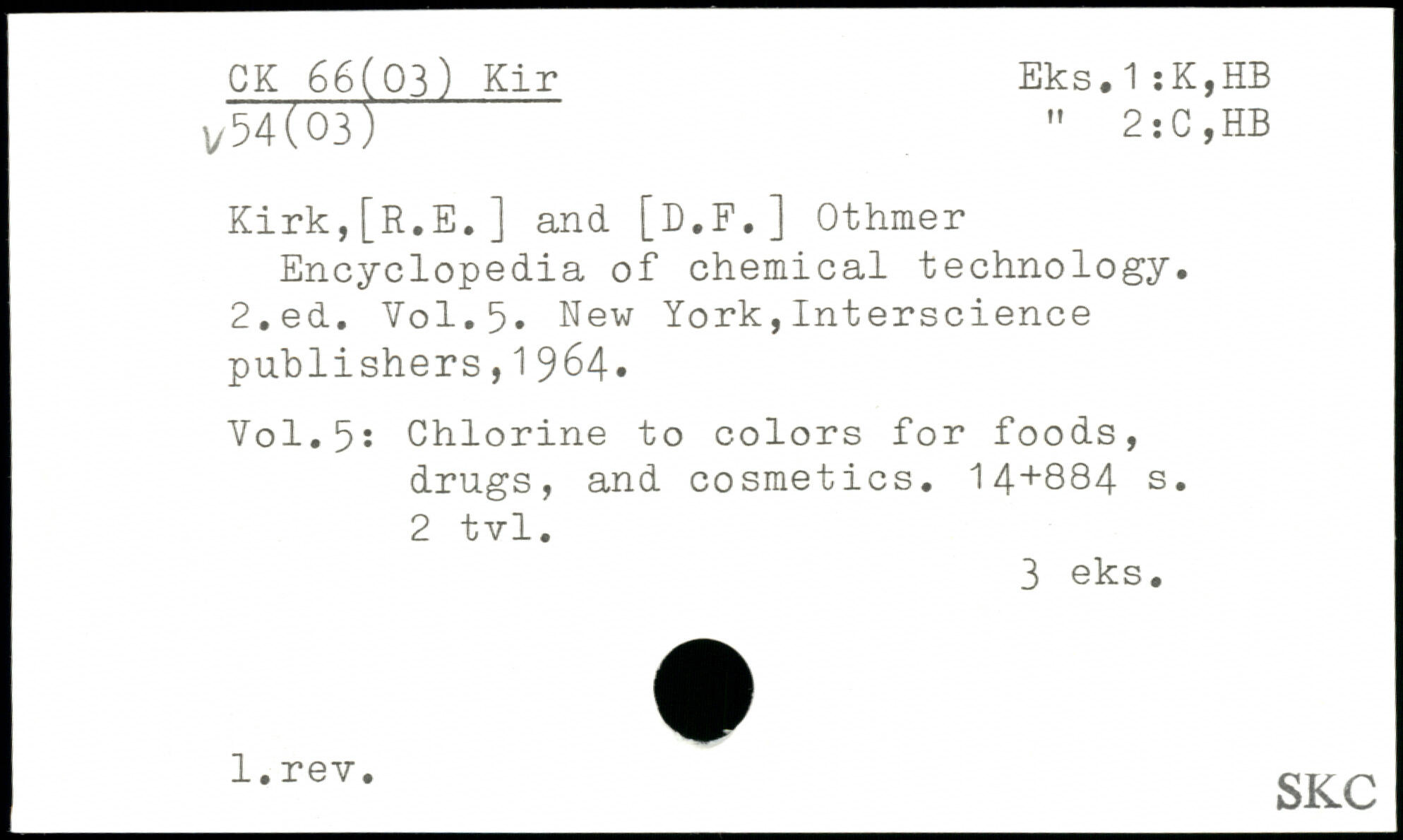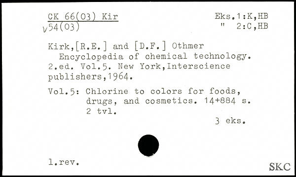 Kirk,[R.E.] and [D.F.] Othmer Encyclopedia of chemical technology. 2,ed.