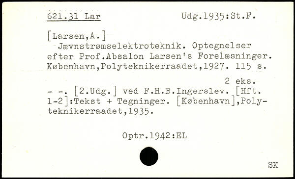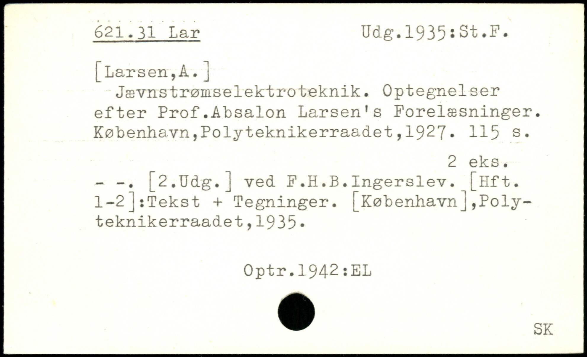 Jævnstrømselektroteknik. Optegnelser efter Prof.Absalon Larsen's Forelæsninger.