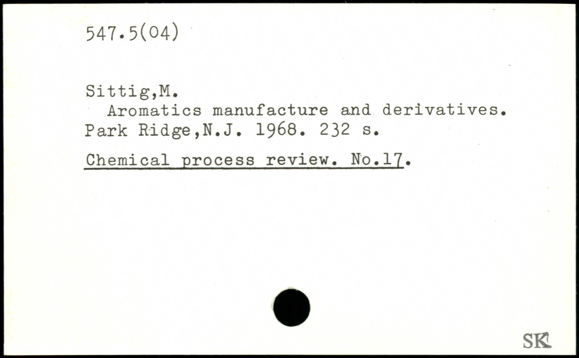 Aromatics manufacture and derivatives. Park Ridge,N.J. 1968.