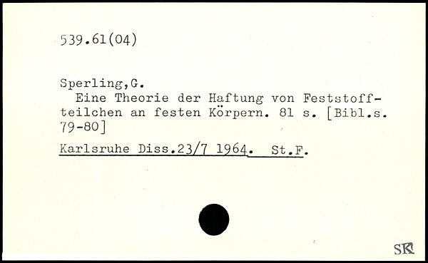 Eine Theorie der Haftung von Feststoffteilchen an festen Körpern.