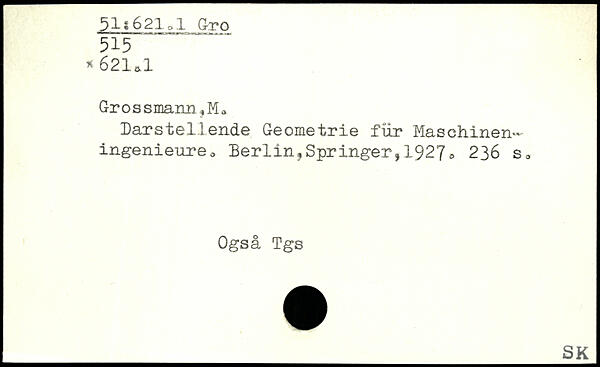 . 621Ä1 GrossmannfMa Darstellende Geometrie für Maschineningenieure.