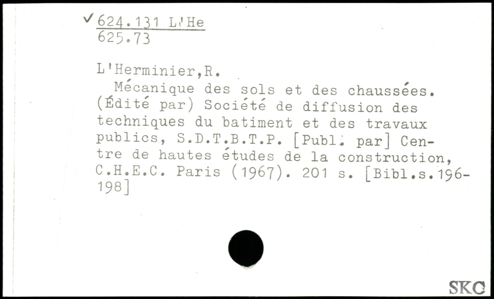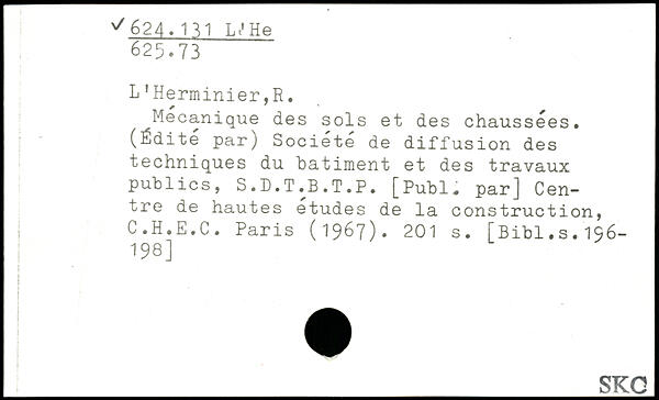 L’Herminier,R. Mécanique des sols et des chaussées. (Édite par) Société de diffusion des techniques du batiment et des travaux publics, S.D.T.B.T.P. [Publ, par] Centre de hautes etudes de la construction, C.H.E.C. Paris (1967).