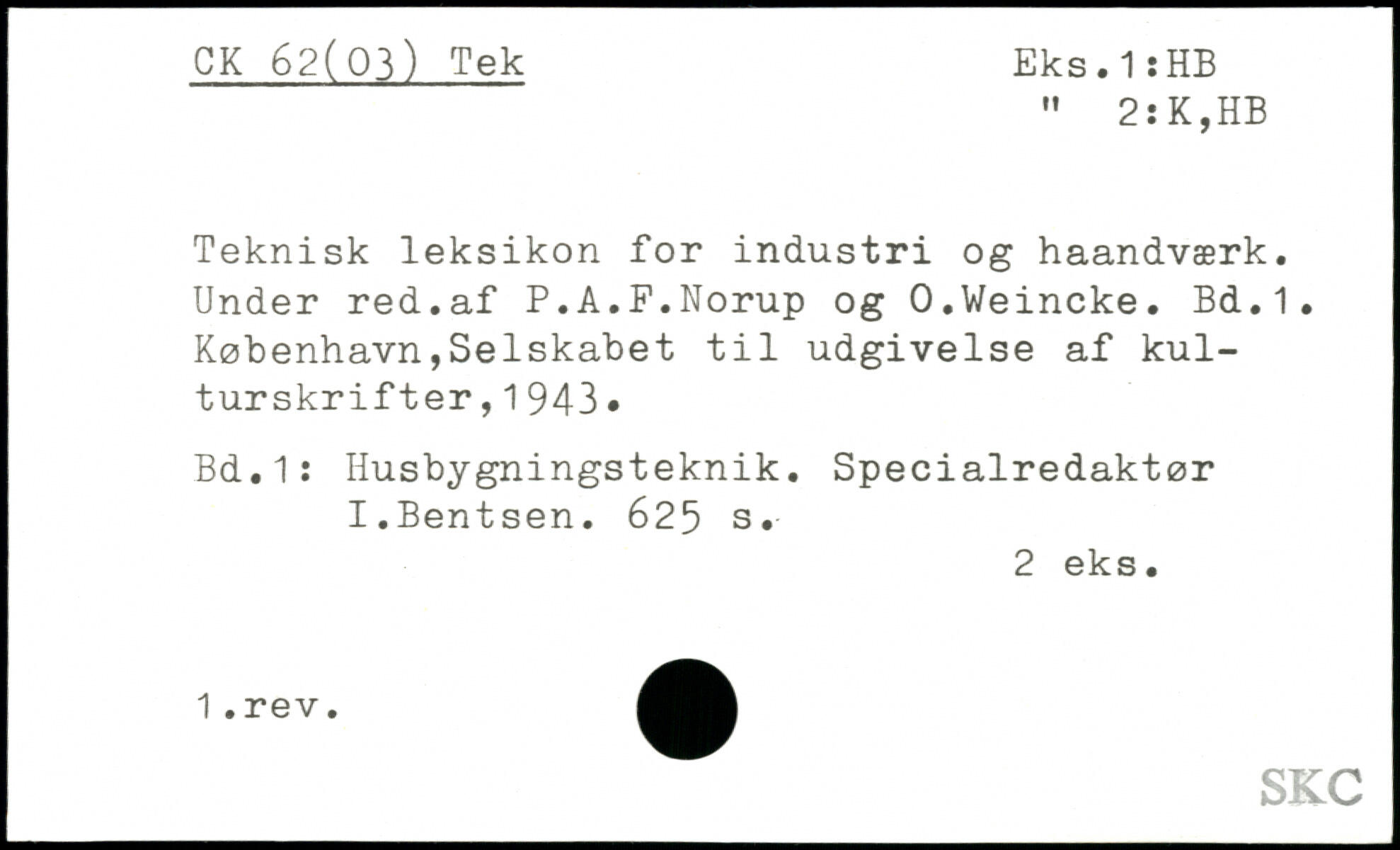 Teknisk leksikon for industri og haandværk. Under red.af P.A.F.Norup og O.Weincke.