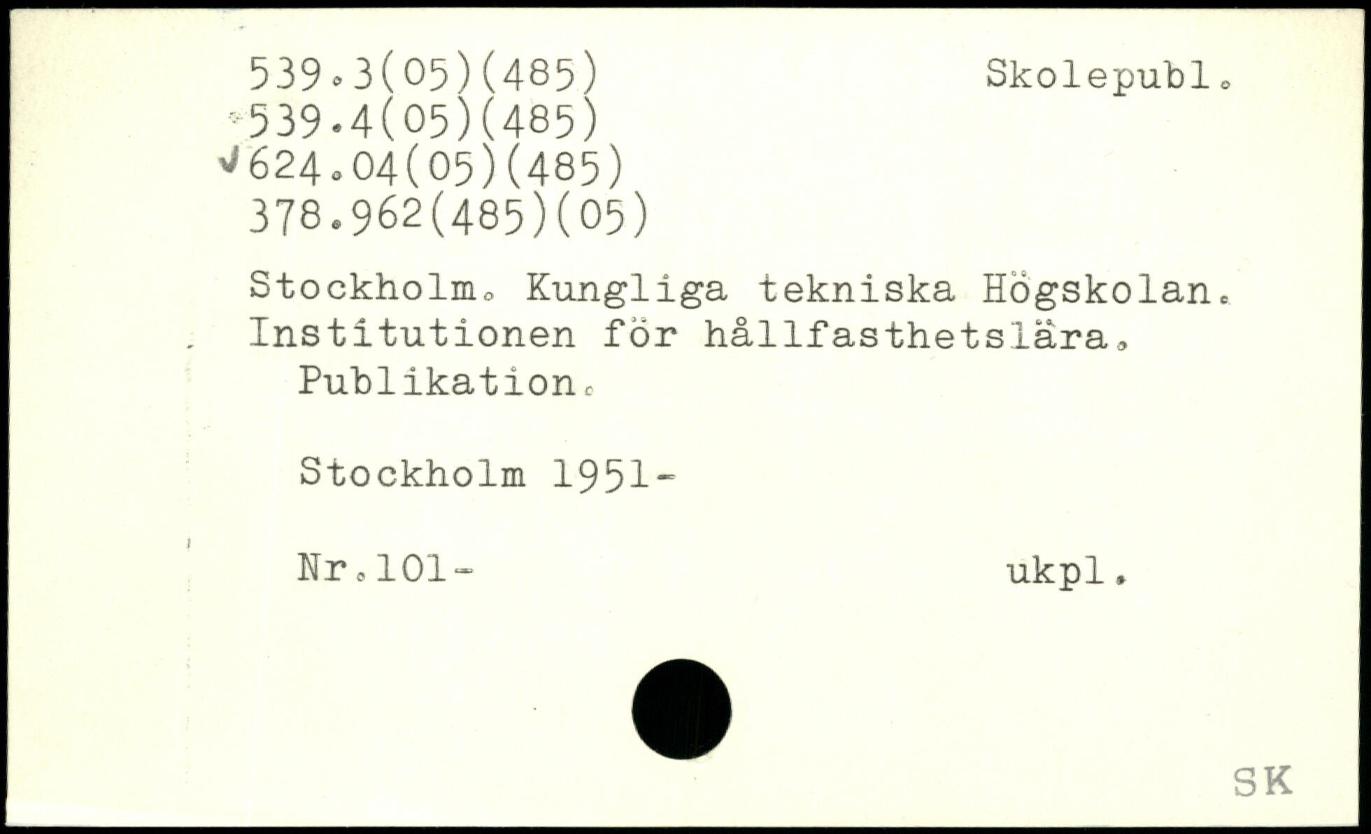 Stockholmo Kungliga tekniska Högskolan, Institutionen for hållfasthetslära, Publikationc