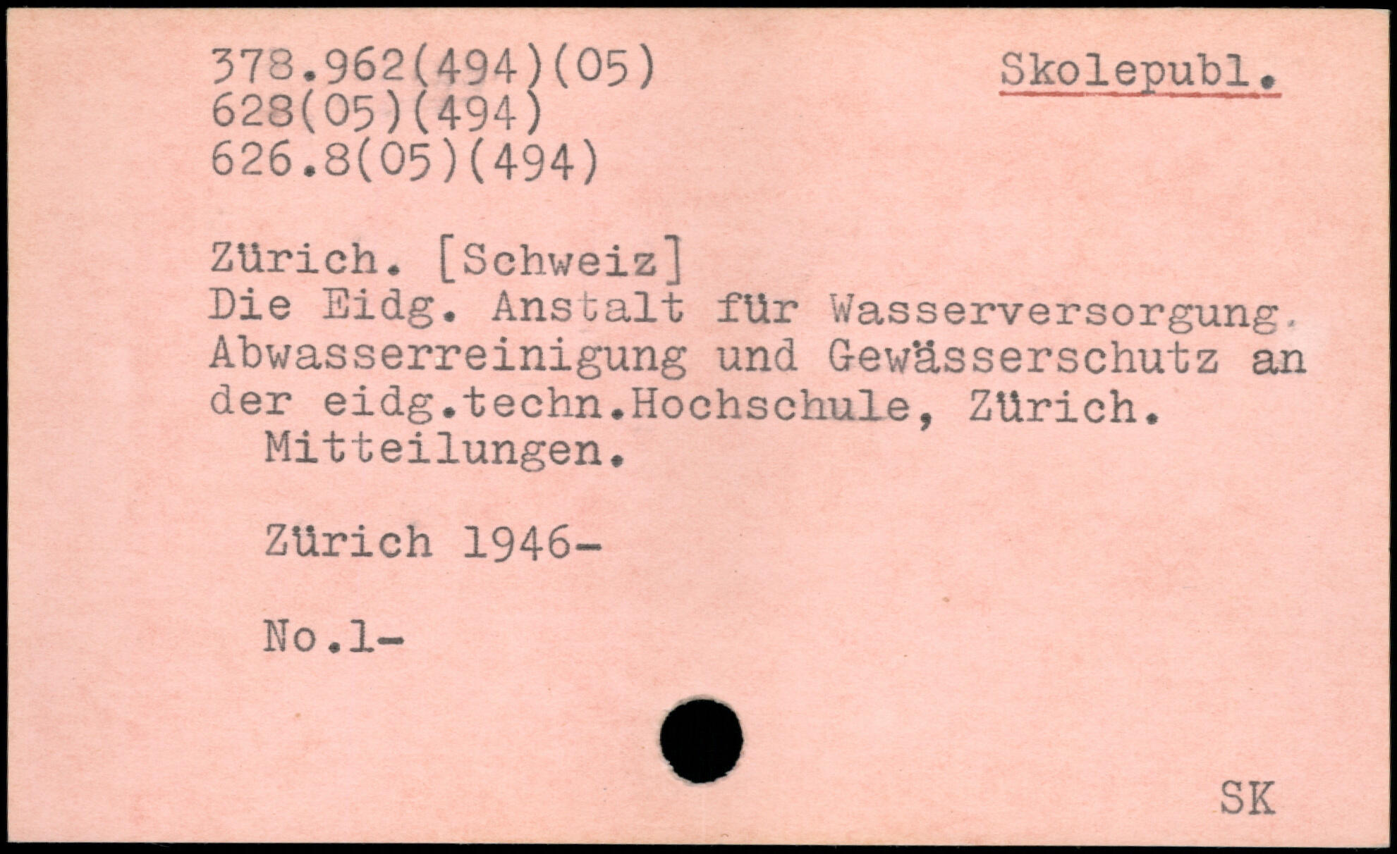 Zürich. [Schweiz] Die Eidg. Anstalt für Wasserversorgung, Abwasserreinigung und Gewässerschütz an der eidg.techn.Hochschule, Zürich. Mitteilungen. Zürich 1946- No .1-
