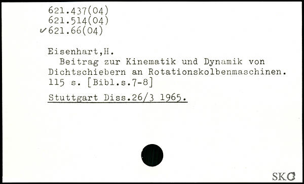 Beitrag zur Kinematik und Dynamik von Dichtschiebern an Rotationskolbenmaschinen.