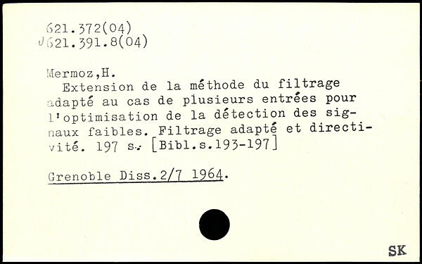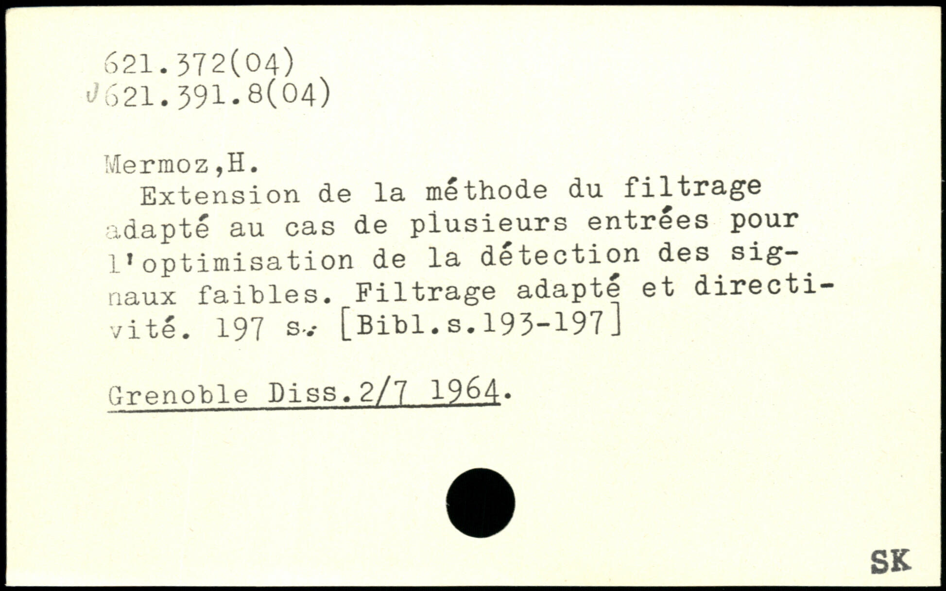 Extension de la méthode du filtrage adapté au cas de plusieurs entrées pour l’optimisation de la détection des sig-riaux faibles. Filtrage adapte et directivité.