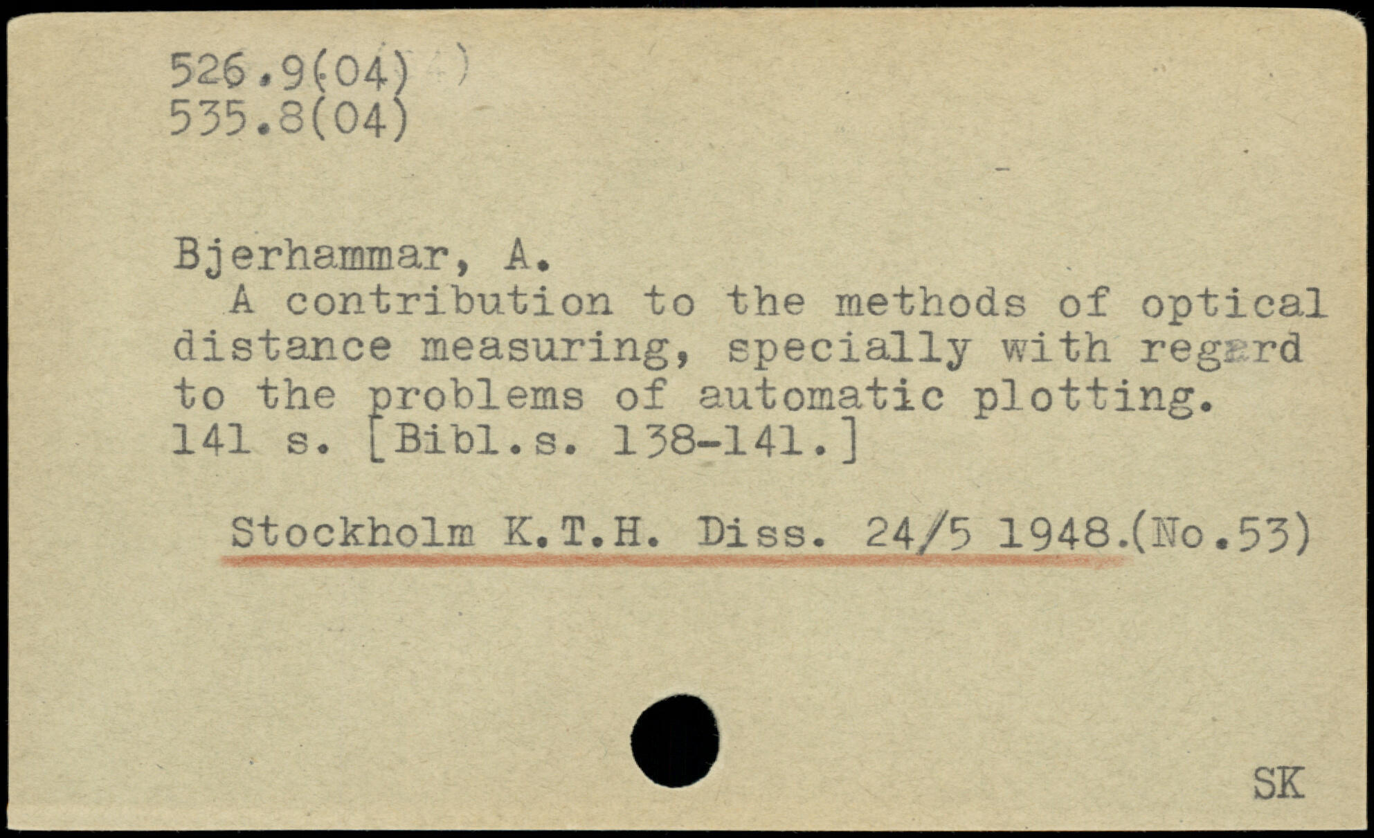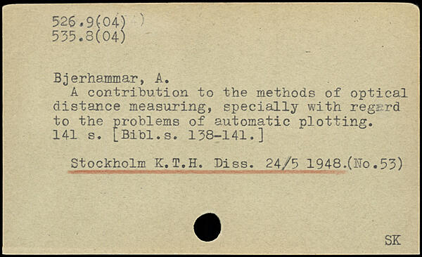 A contribution to the methods of optical distance measuring, specially with regard to the problems of automatic plotting.