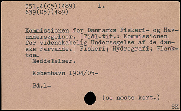 Kommissionen for Danmarks Fiskeri- og Havundersøgelser. [Tidl.tit.: Kommissionen for videnskabelig Undersøgelse af de danske Farvande.] Fiskeri; Hydrografi; Plankton. Meddelelser.