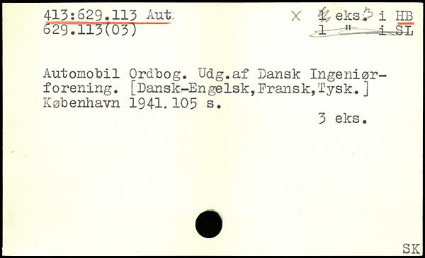 Automobil Ordbog. Udg.af Dansk Ingeniørforening.
