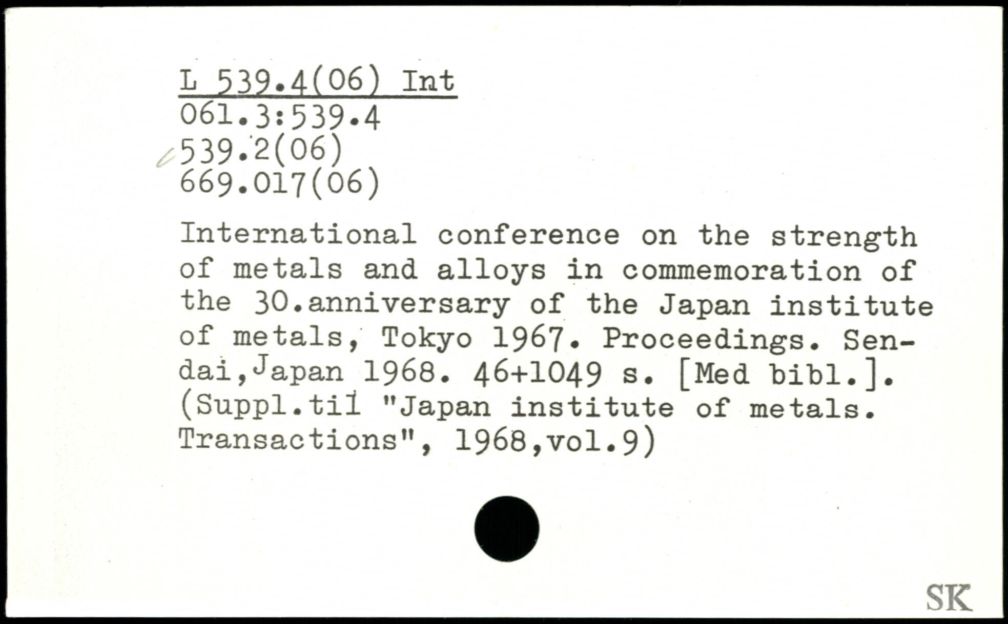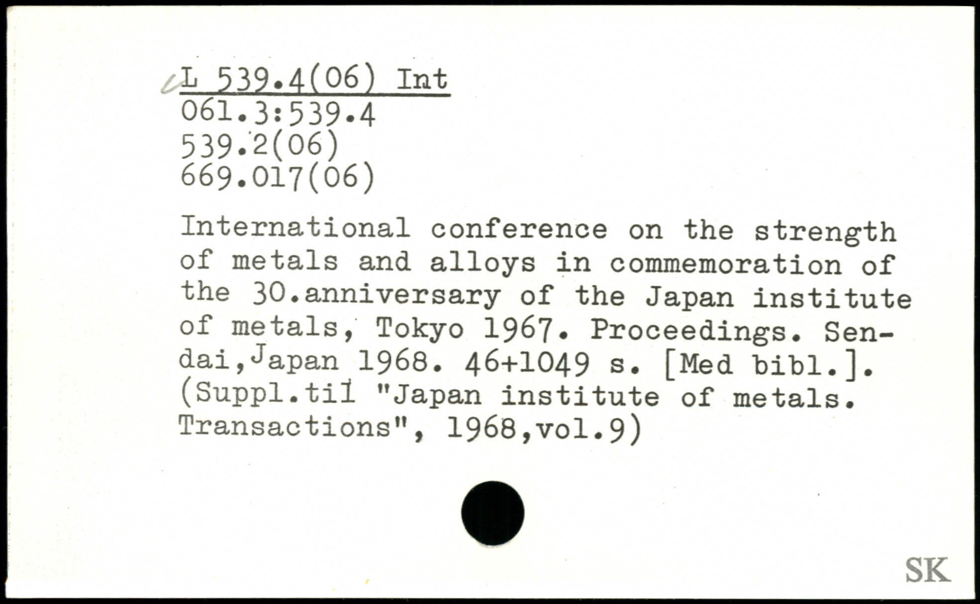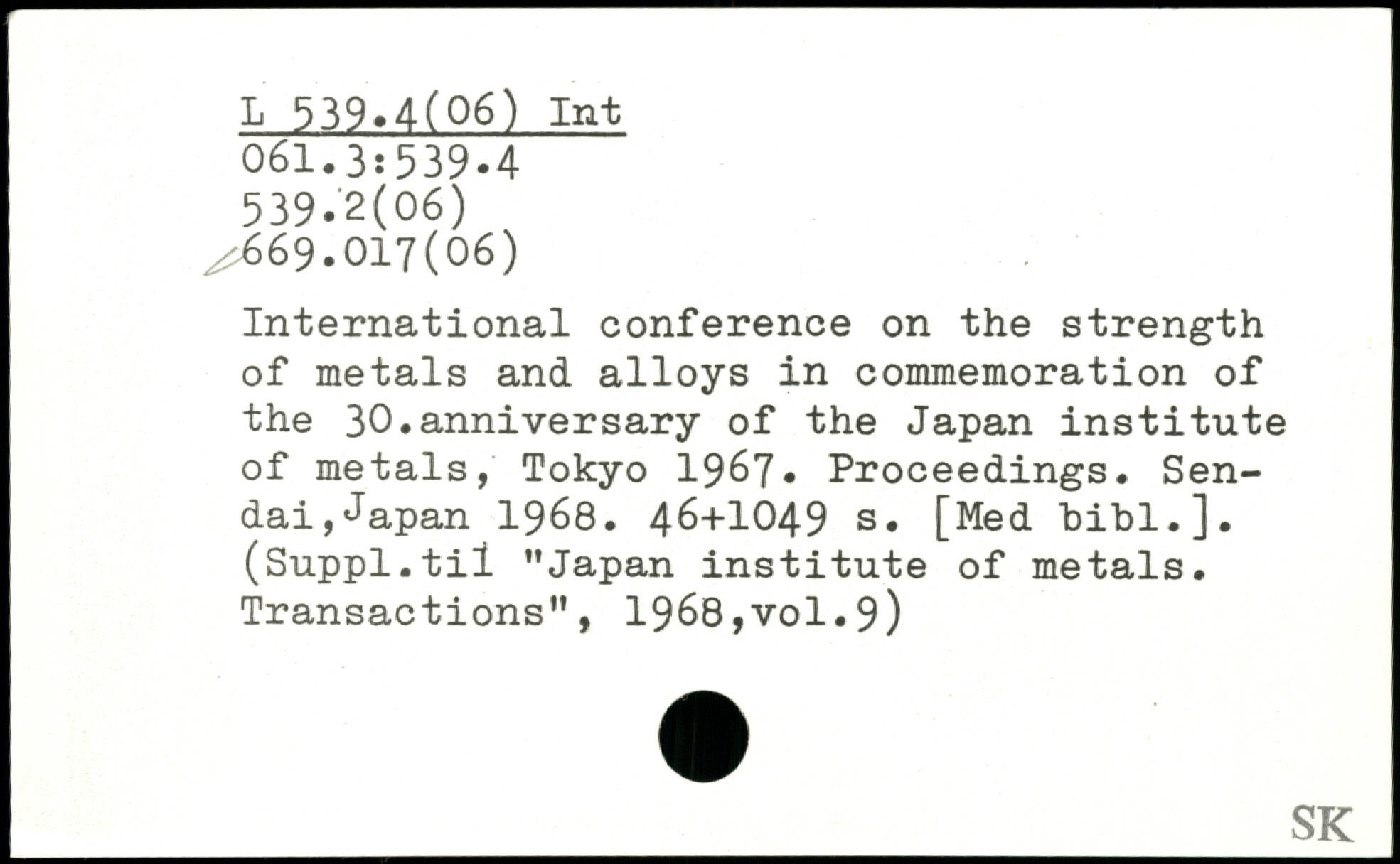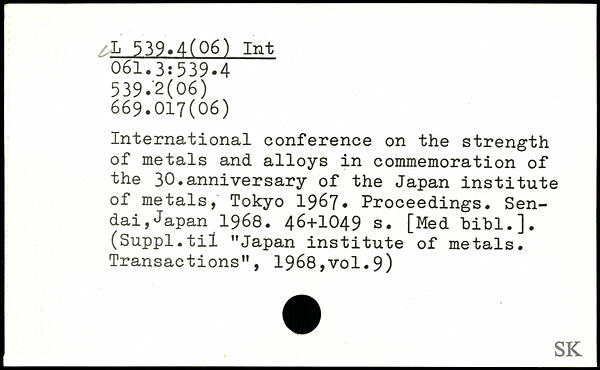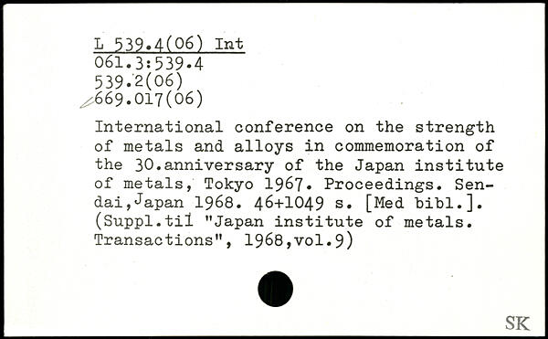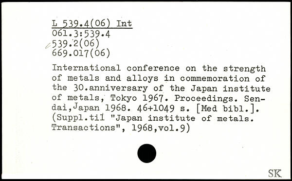 International conference on the strength of metals and alloys in commemoration of the 30.anniversary of the Japan institute of metals