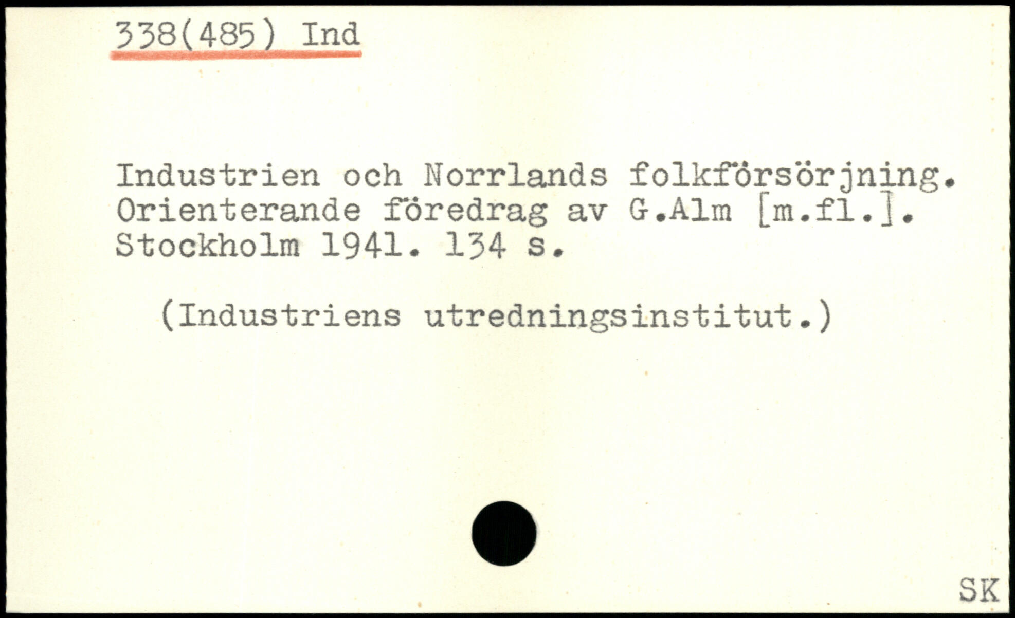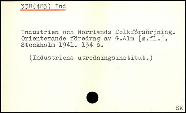 Industrien och Norrlands folkförsörjning. Orienterande föredrag av G.Alm [m.fl.J.