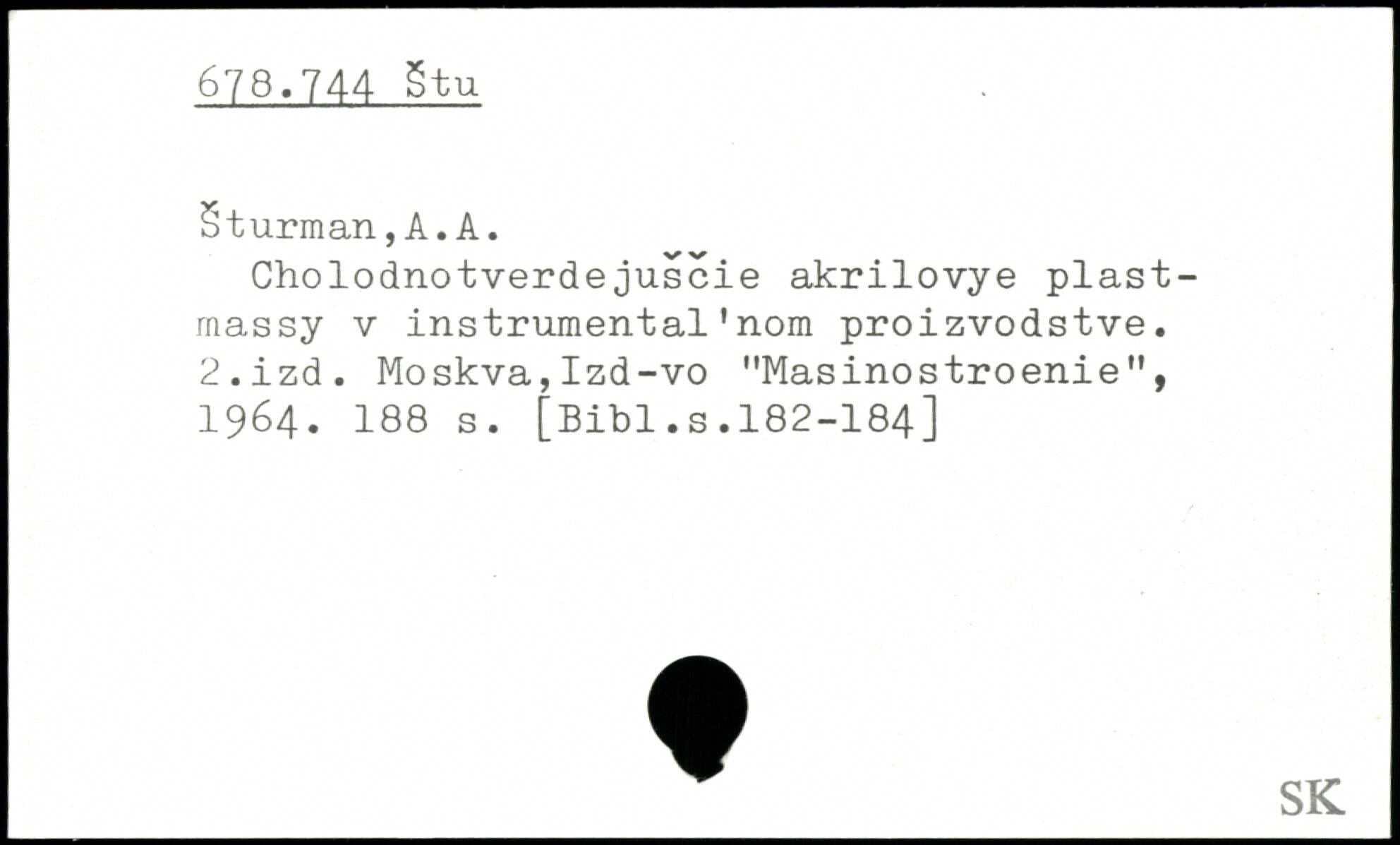 Cholodnotverdejuscie akrilovye plast-rnassy v instrumental1 nom proizvodstve. 2.izd. Moskva,Izd-vo "Masinostroenie", 1964.