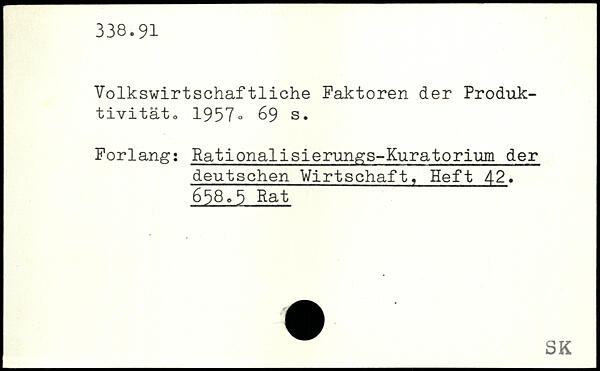Volkswirtschaftliche Faktoren der Produktivität, 1957.