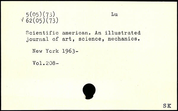 Scientific american. An illustrated journal of art, science, mechanics. New Ycrk 1963-