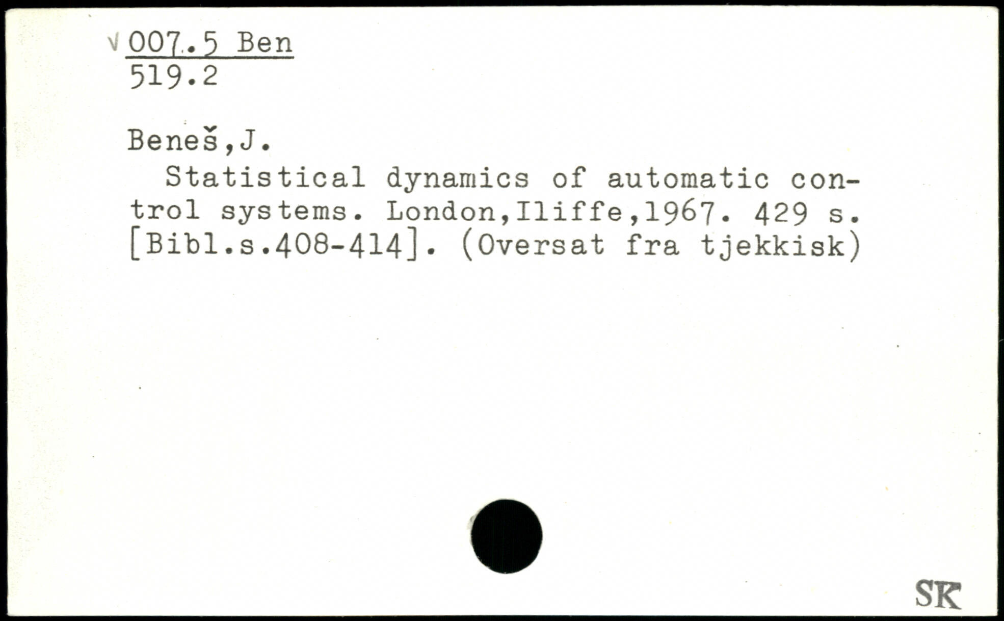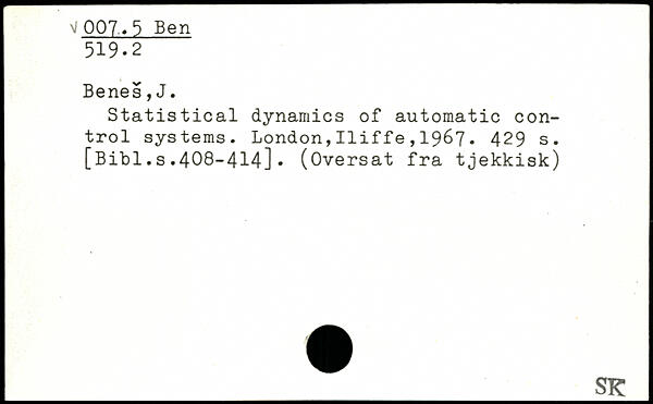 Statistical dynamics of automatic control systems. London,Iliffe,19&7.
