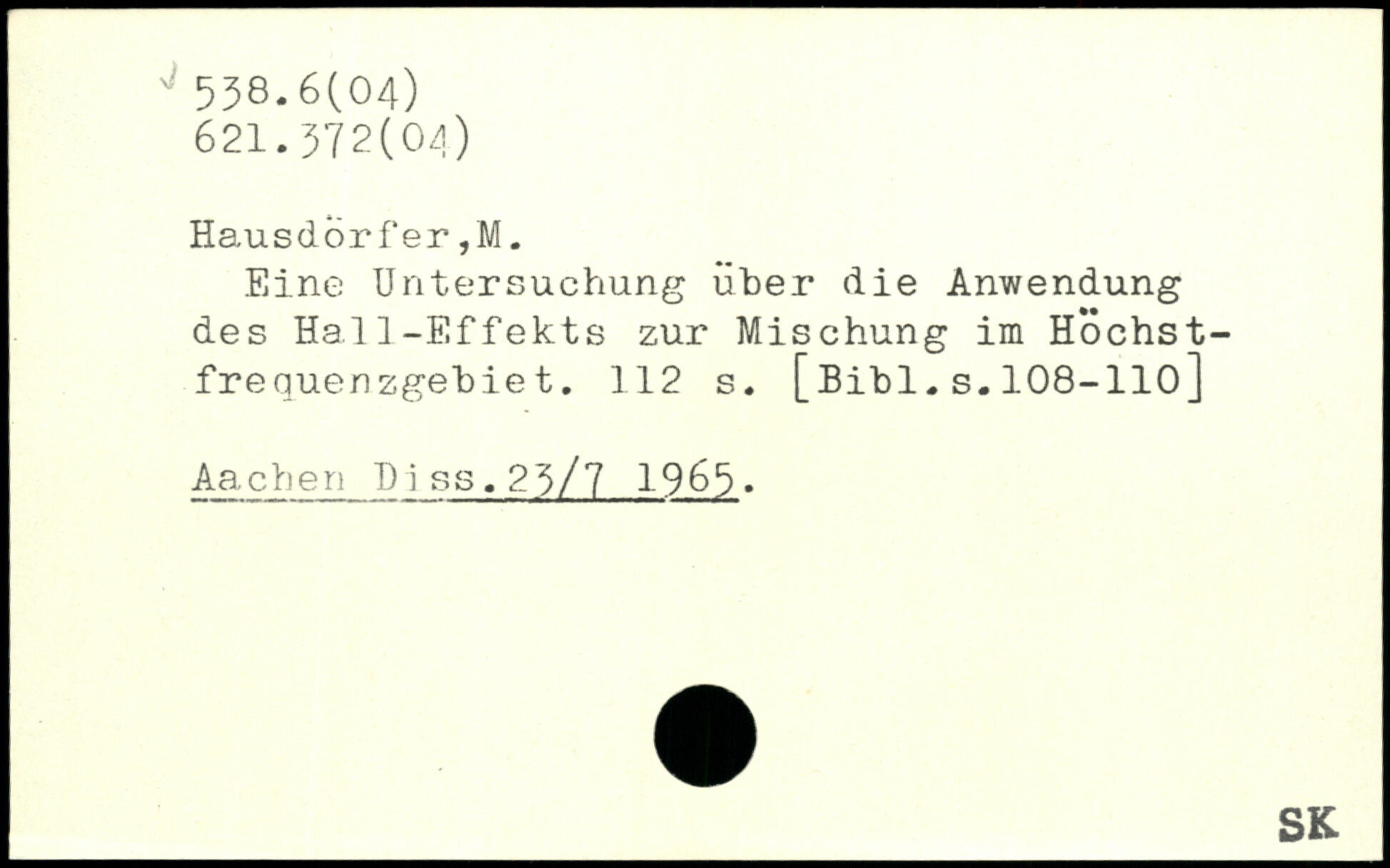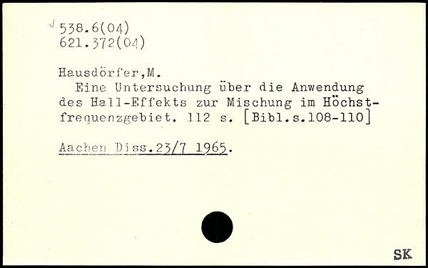 Eine Untersuchung über die Anwendung des Hall-Effekts zur Mischung im HÖchst-frequenzgebiet.