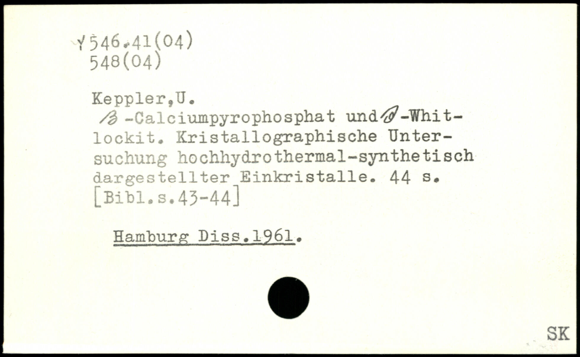 /% -Calciumpyrophosphat und^-Whit-lockit. Kristallographische Untersuchung ho chhydrothermal-syntheti s ch dargestellter Einkristalle.
