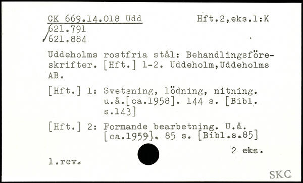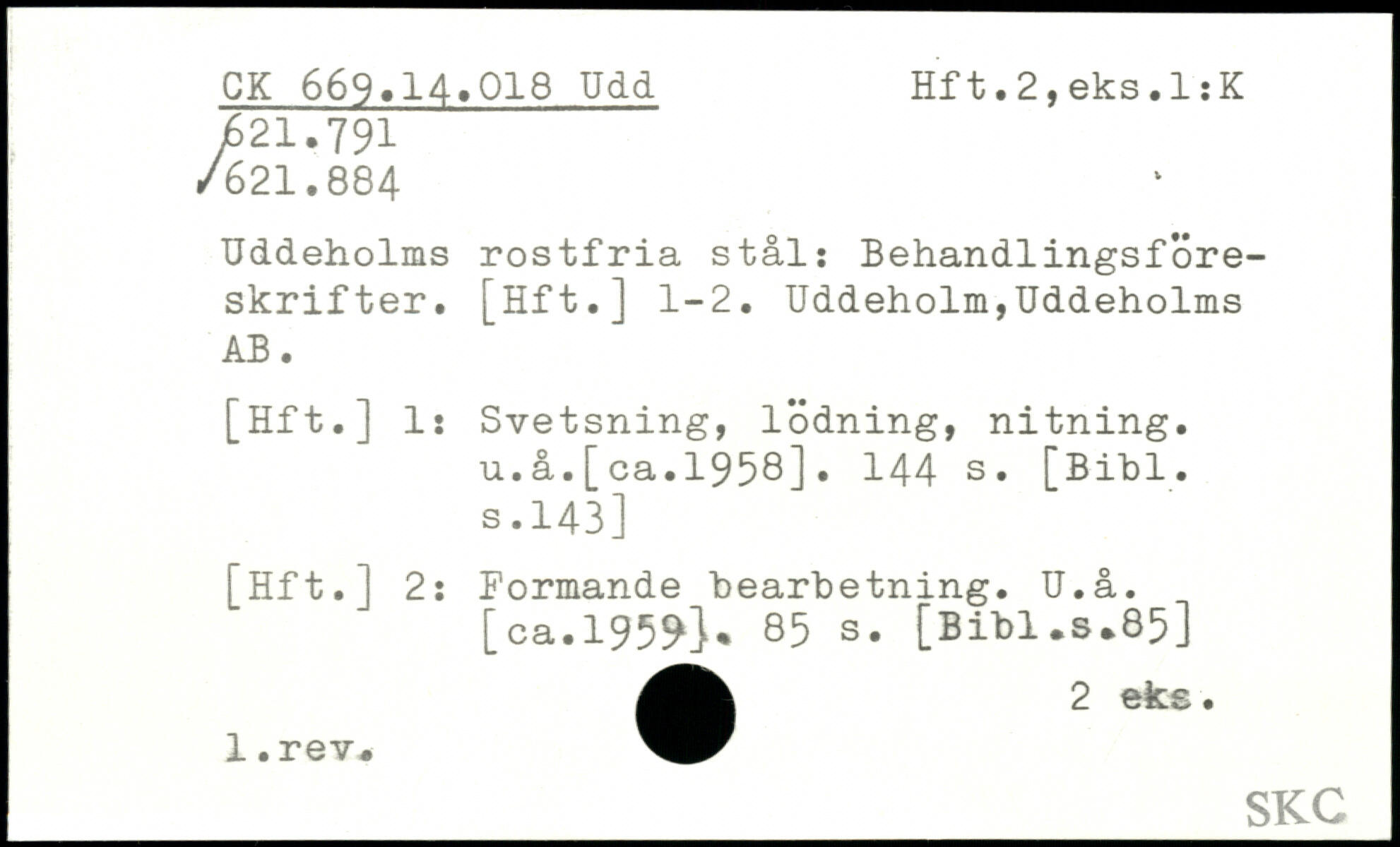 Uddeholms rostfria stål: Behandlingsföreskrifter. [Hft.] 1-2. Uddeholm,Uddeholms AB.