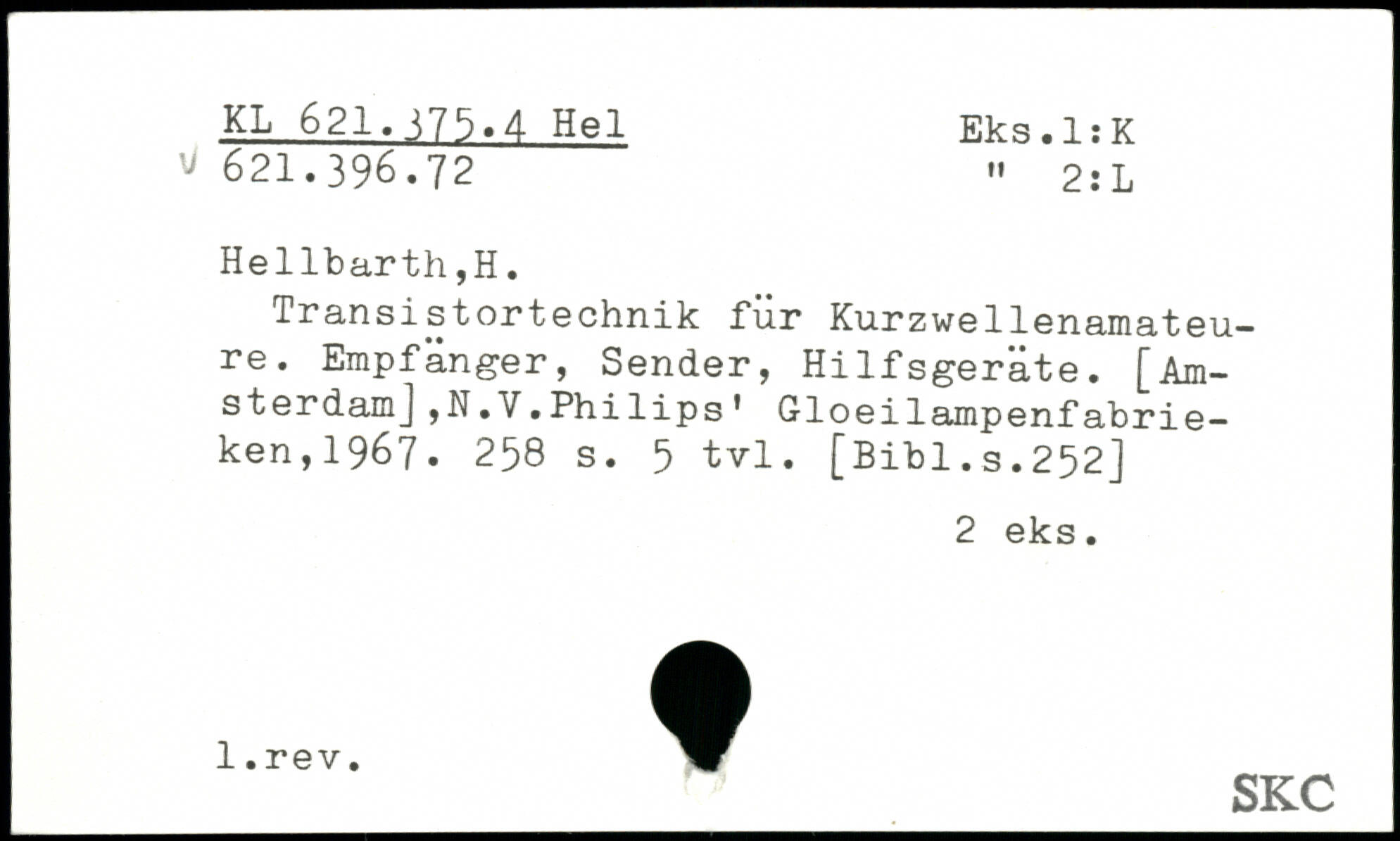 Transistortechnik für Kurzwellenamateure. Empfänger, Sender, Hilfsgeräte. [Am-sterdam],N.V.Philips 1 Gloeilampenfabrie-ken,1967.