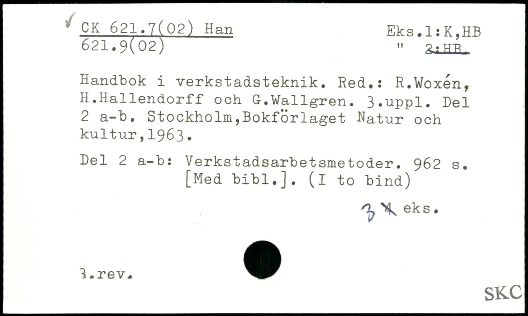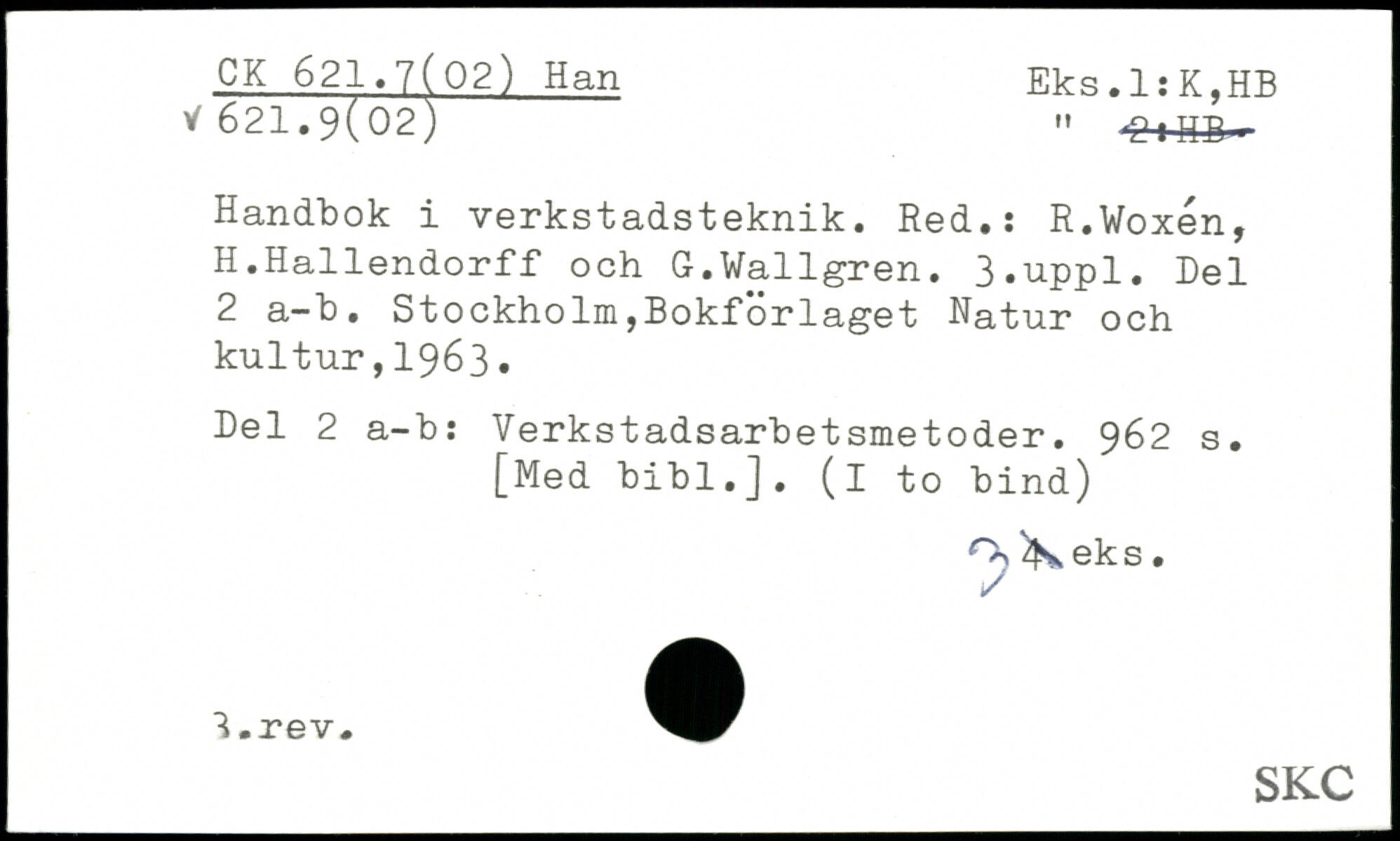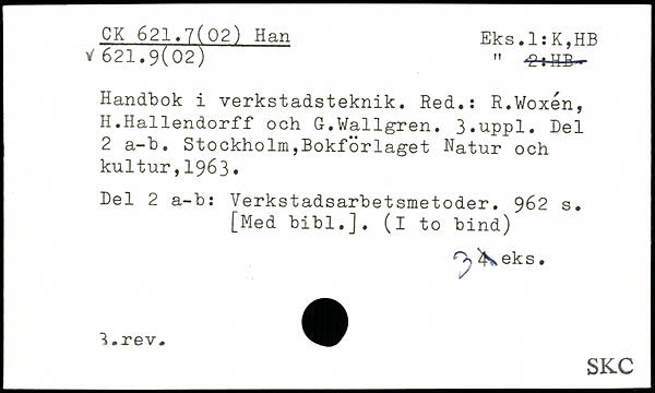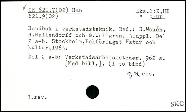 Handbok i verkstadsteknik. Red.: R.Woxén, H.Hallendorff och G.Wallgren.