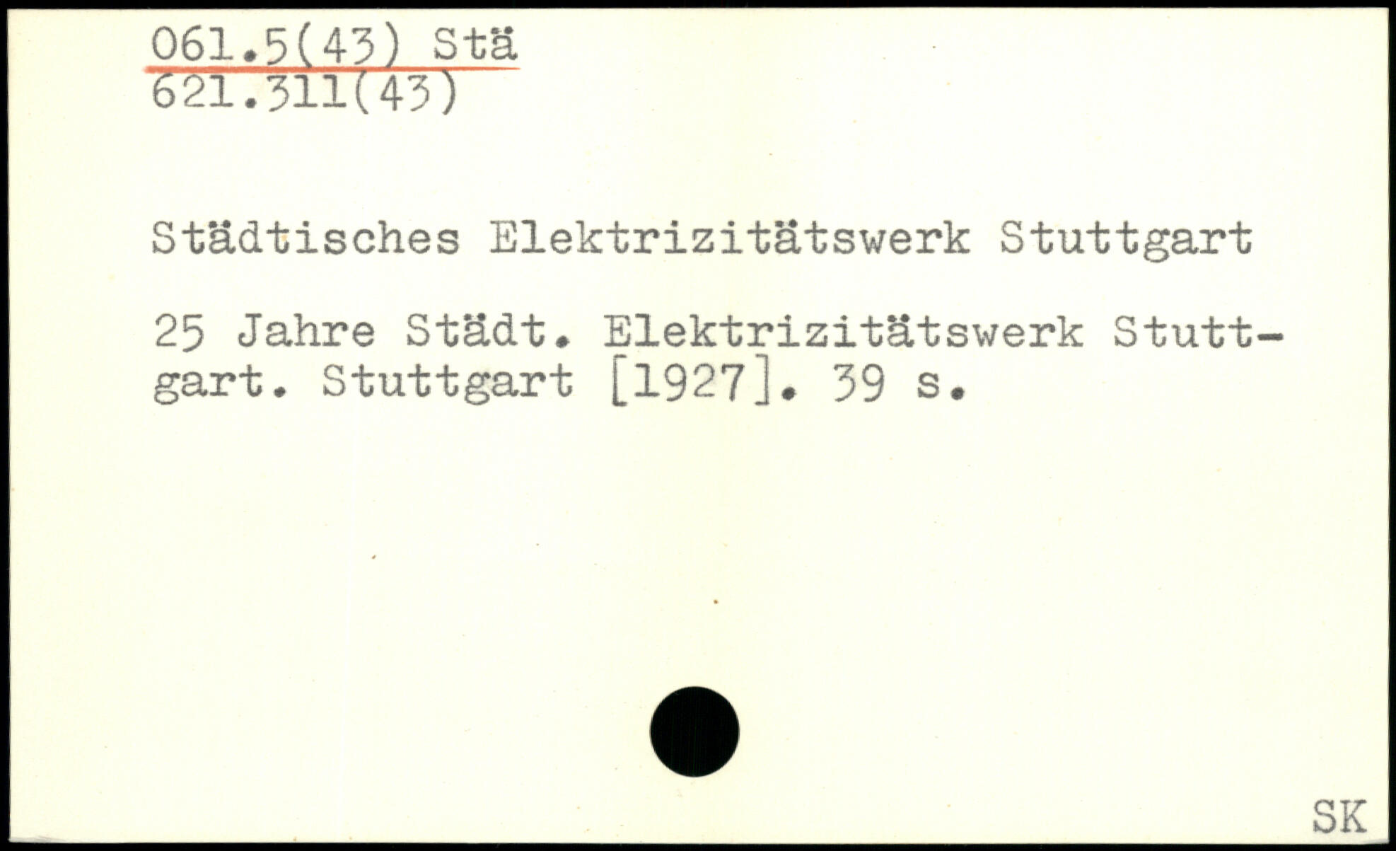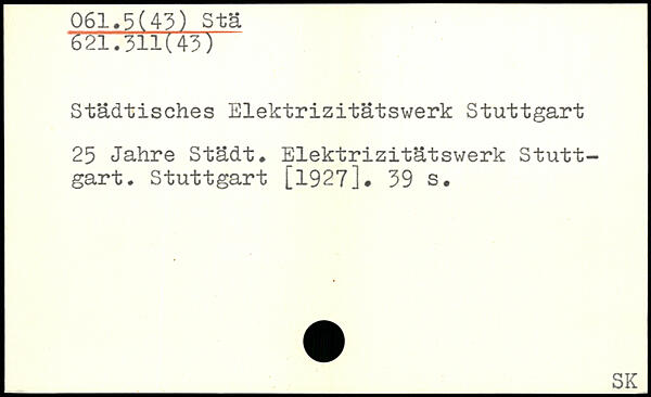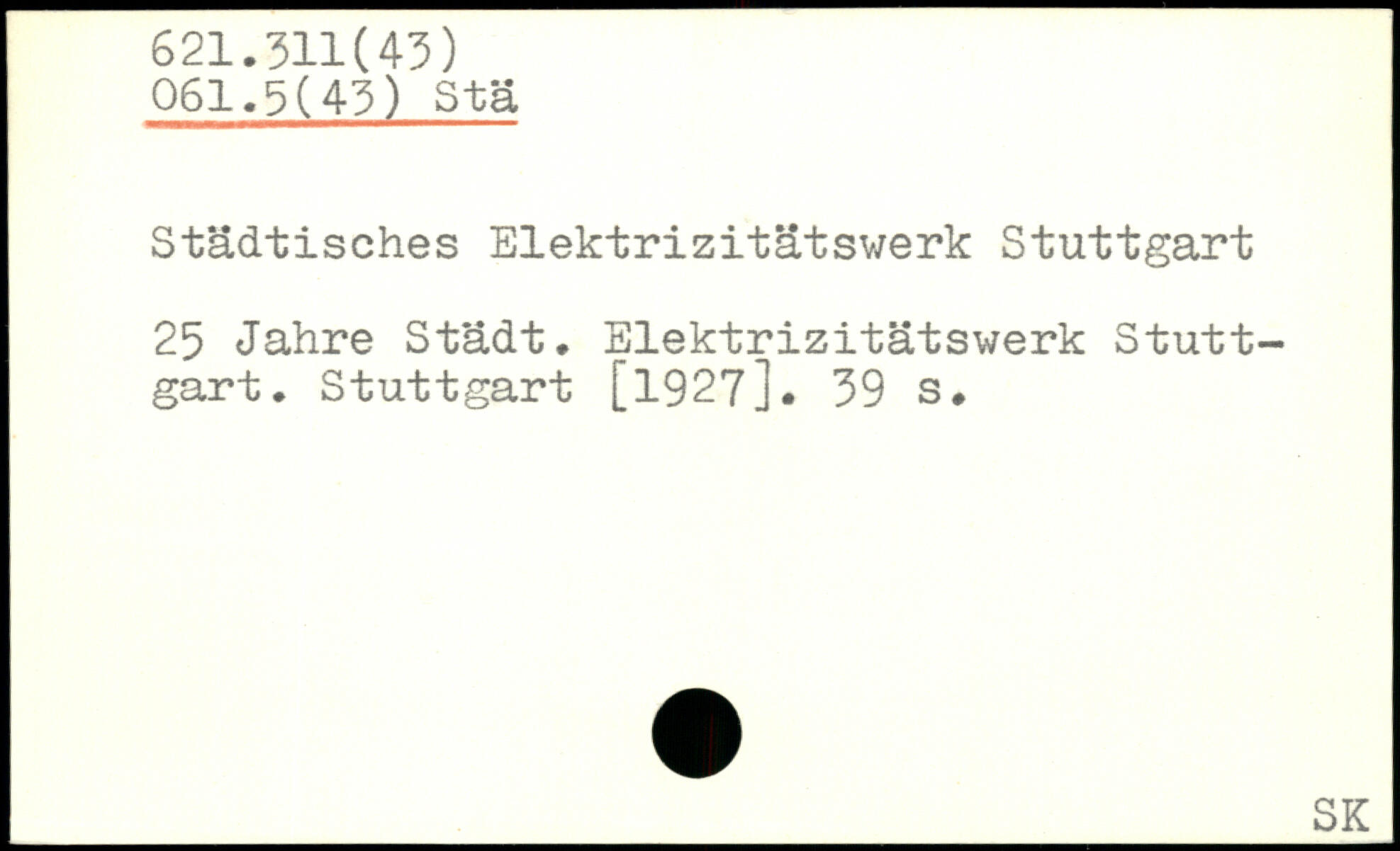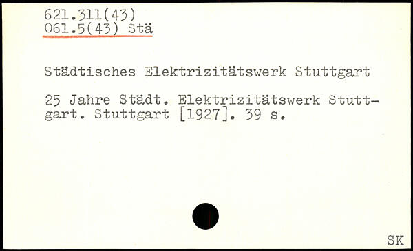 Städtisches Elektrizitätswerk Stuttgart 25 Jahre Städt. Elektrizitätswerk Stuttgart.