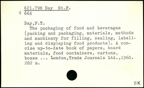 The packaging of food and beverages (packing and packaging, materials, methods and machinery for f1111ng, sealing, labelling and displaying food products), A concise up-to-date book of papers, board materials, food containers, cartons, boxes 00, London,Trade Journals Ltd,,1960.