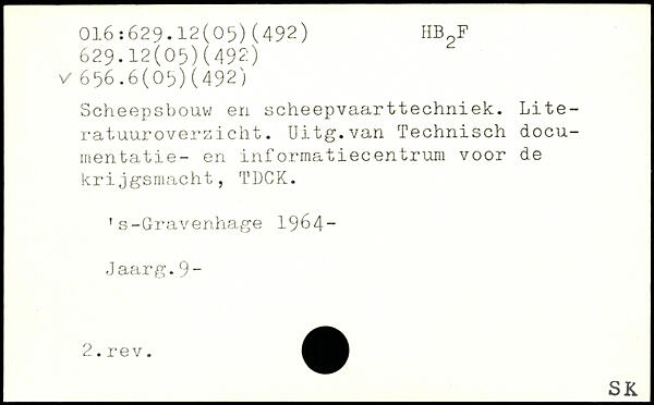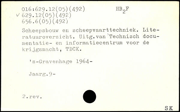 Scheepsbouw en scheepvaarttechniek. Lite-ratuuroverzicht. Uitg.van Technisch docu-mentatie- en informatiecentrum voor de krijgsmacht, TUCK. 1s-Gravenhage 1964-Jaarg.9 -