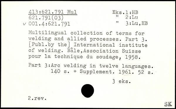 UDK: 413:621.791 Mul, 621.791(03), 001.4:621.791