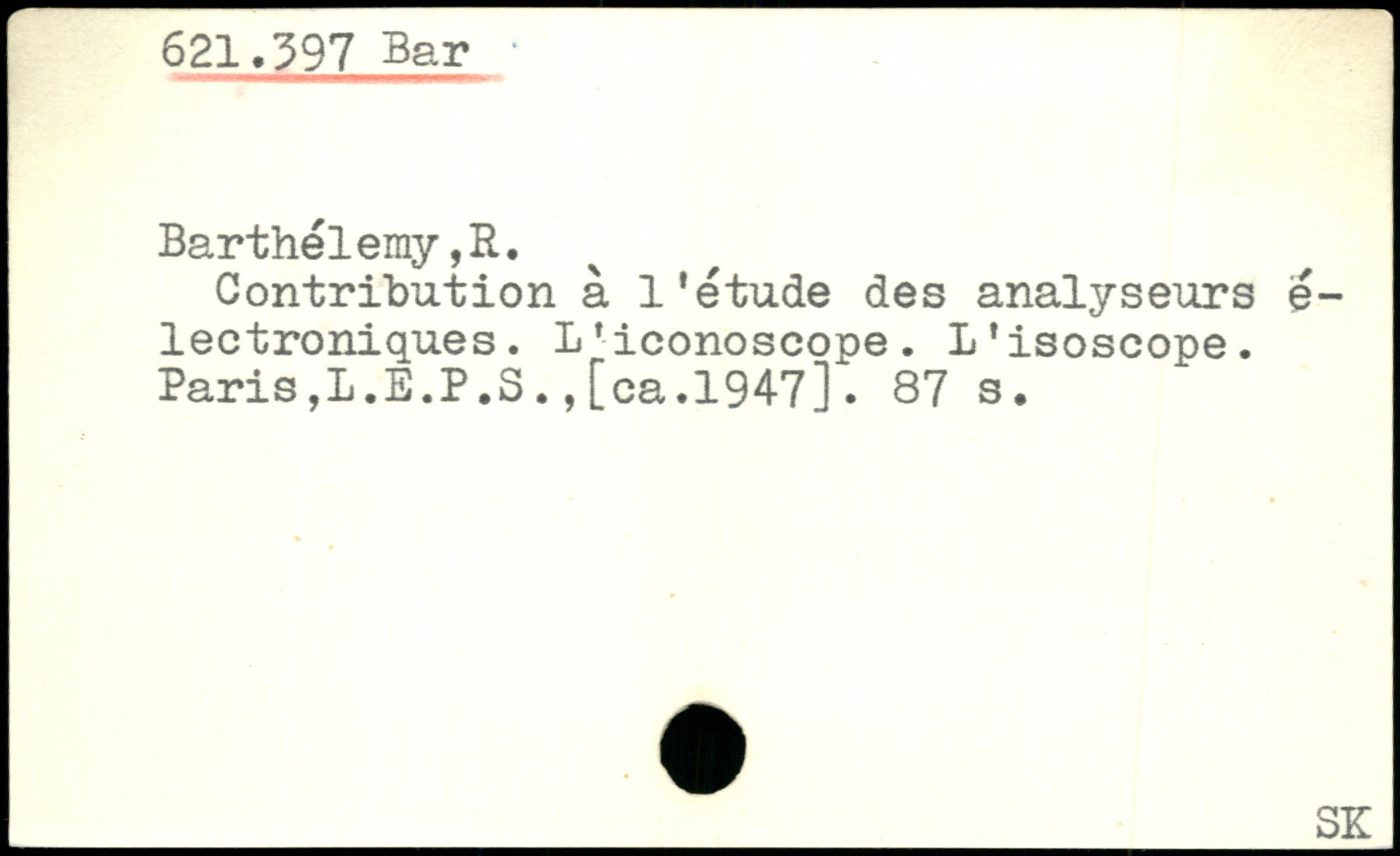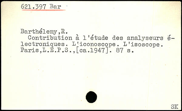 Contribution à l’étude des analyseurs é-lectroniques. L’iconoscope. L'isoscope. Paris,L.E.P.S., [ca.194-7].