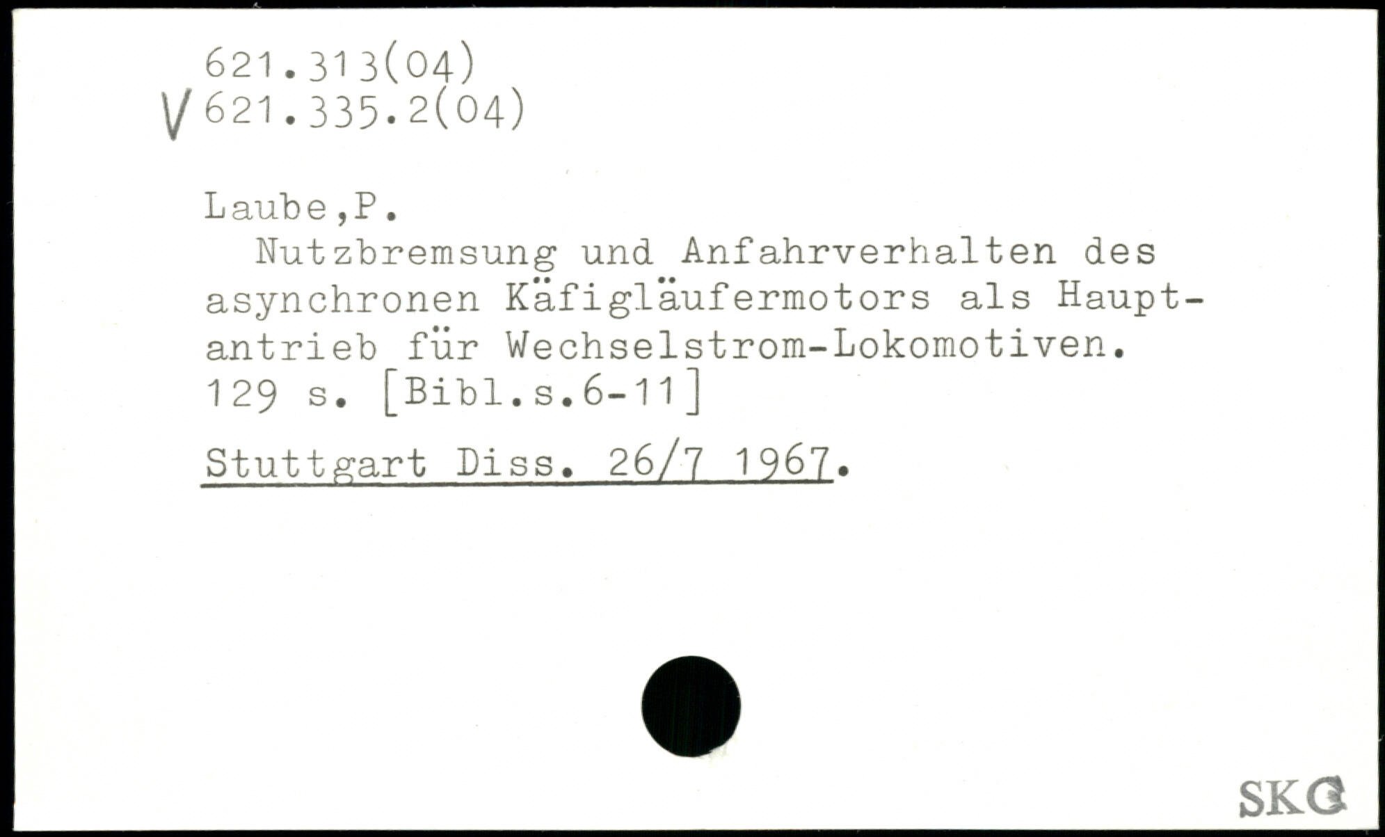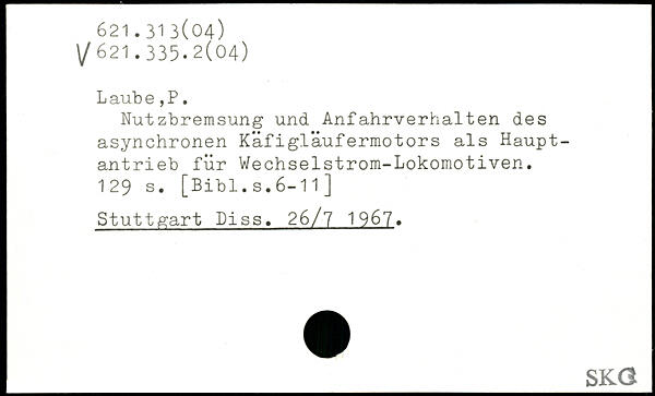 L aub e,P. Nutzbremsung und Anfahrverhalten des asynchronen Käfigläufermotors als Hauptantrieb für Wechselstrom-Lokomotiven.
