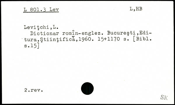 Levit^chi ,L. Dictionar romîn-englez. Bucure§ti,Edi-tura,§tiin^ifica,1960.