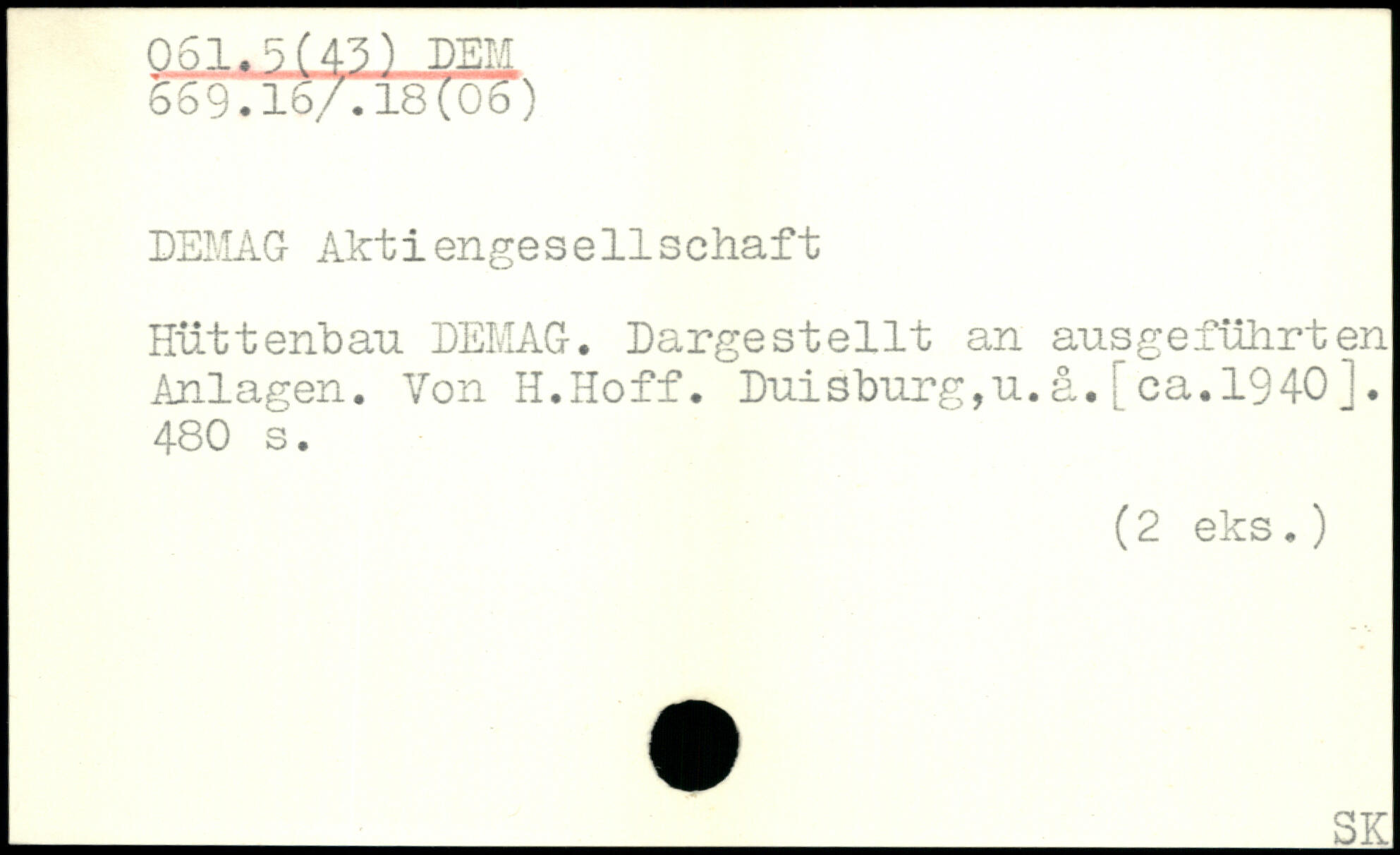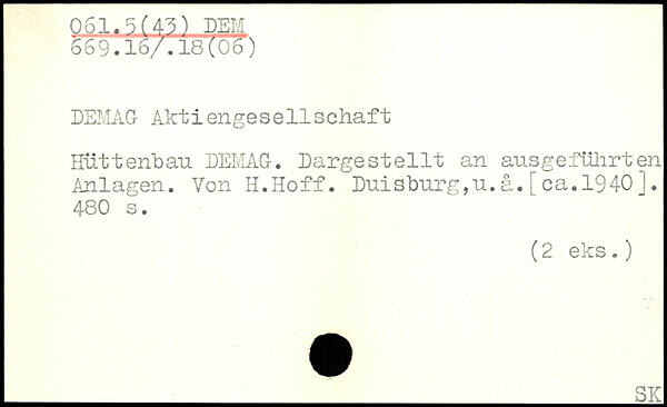 DEMAG Aktiengesellschaft Hüttenbau DEIvIAG. Dargestellt an ausgeführten Anlagen. Von H.Hoff. Duisburg, u. ä. [ ca. 1940 J.
