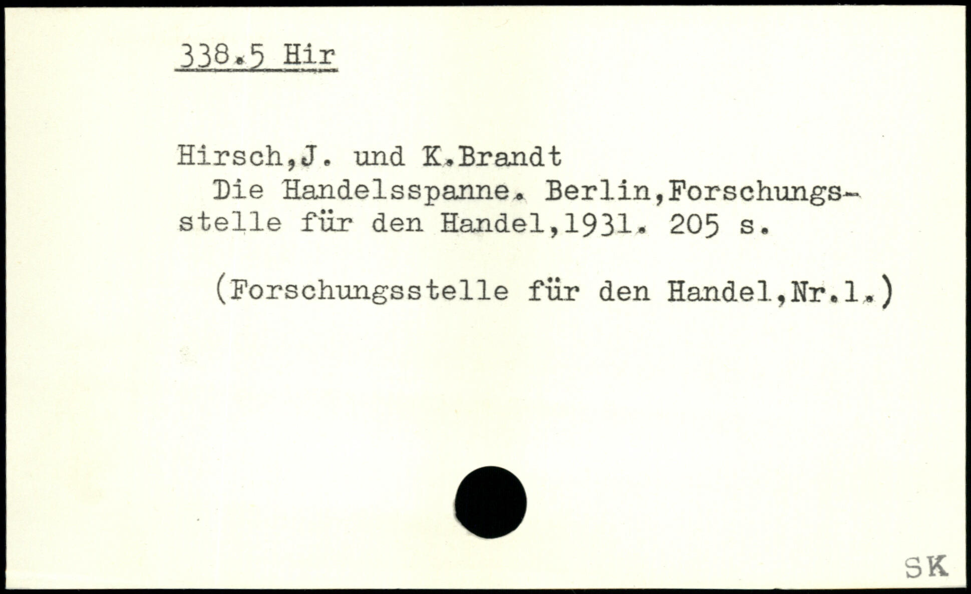 Die Handelsspanne, Berlin,Forschungsstelle für den Handel,1931. 205 s.
