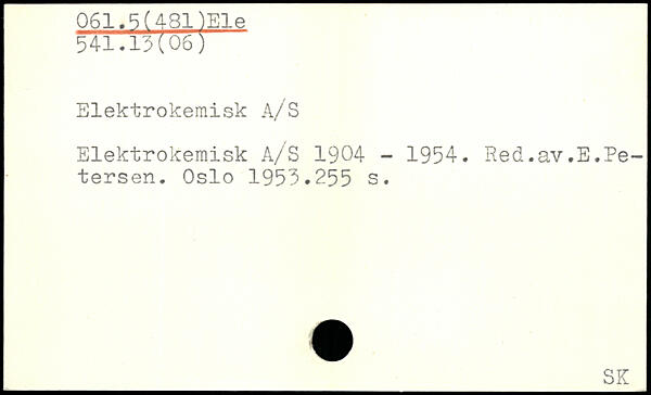 Elektrokemisk A/S 1904 - 1954. Red.av.E.Petersen. Oslo 1953.