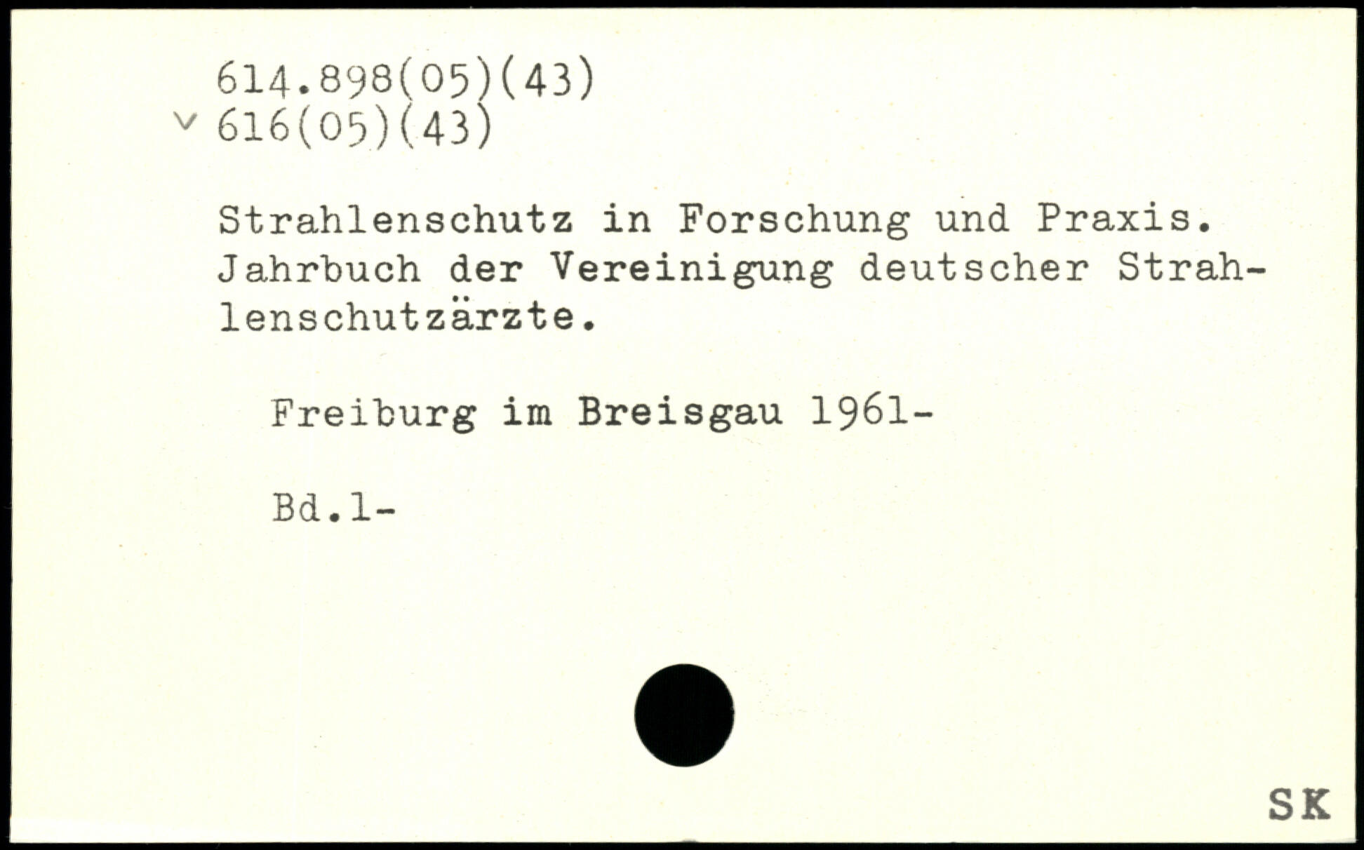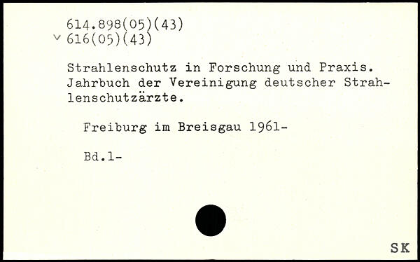 Strahlenschutz in Forschung und Praxis. Jahrhuch der Vereinigung deutscher Strahlers chut z ärzt e. Freihurg im Breisgau 1961- Bd.l-