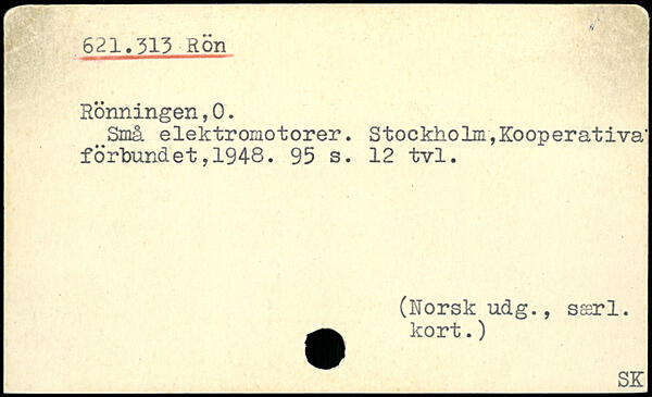 ^Små elektromotorer. Stockholm,Kooperativa’ fö’rbundet, 1948.