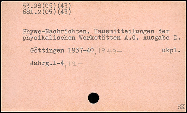 Phywe-Nachrichten. HausmitteHungen der physikalischen Werkstätten A.G. Ausgabe D. Göttingen 1937-4-0 ukpl. Jahrg.1-4 /