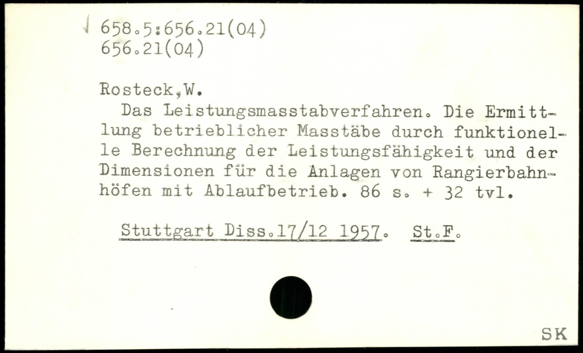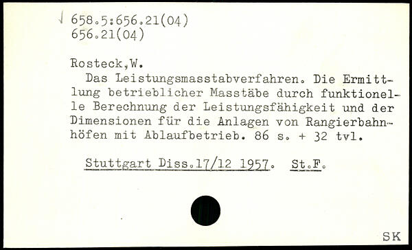 Das Leistungsmasstabverfahren. Die Ermittlung betrieblicher Masstäbe durch funktioneile Berechnung der Leistungsfähigkeit und der Dimensionen für die Anlagen von Rangierbahnhöfen mit Ablaufbetrieb.