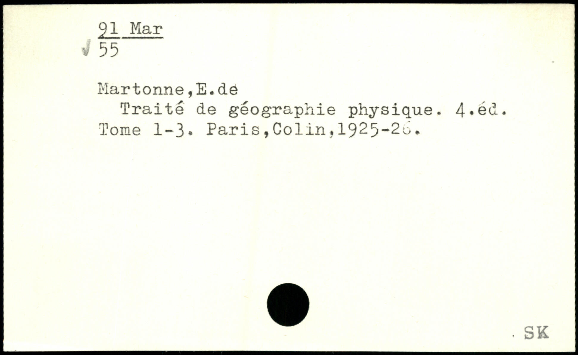Mar t orme, E. de Traité de géographie physique. 4,éd. Tome 1-3