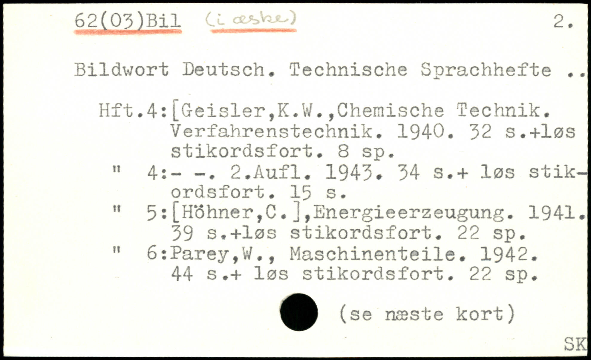 Bildwort Deutsch. Technische Sprachhefte .. Hft.4: [G-eisler,K.W.,Chemische Technik. Verfahrenstechnik. 1940.