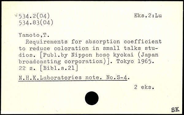 Requirements for absorption coefficient to reduce coloration in small talks studios.