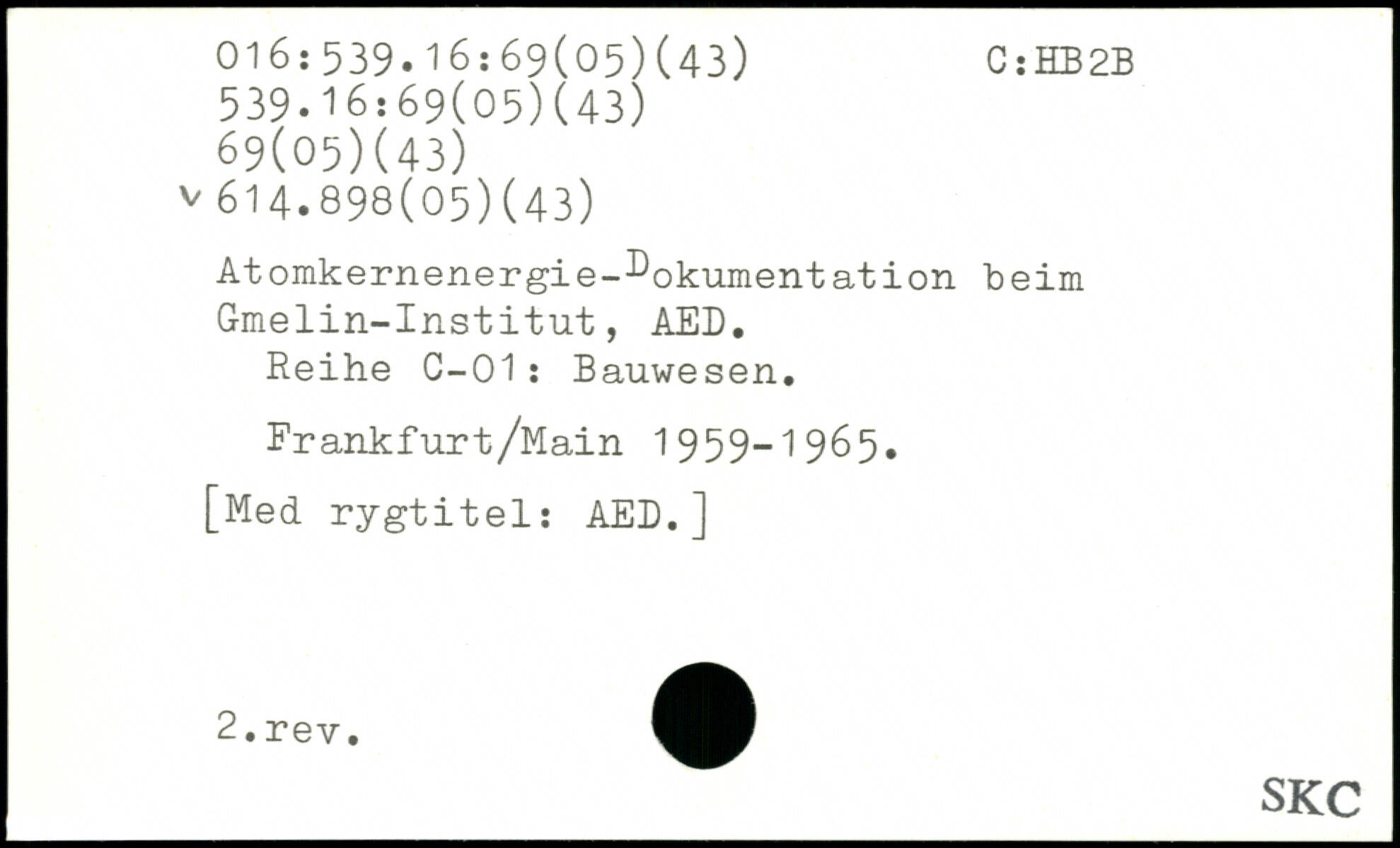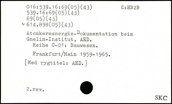 Atomkernenergie-Dokumentation beim Gmelin-Institut, AED. Reihe C-01: Bauwesen. Erankfurt/Main 1959-1965.